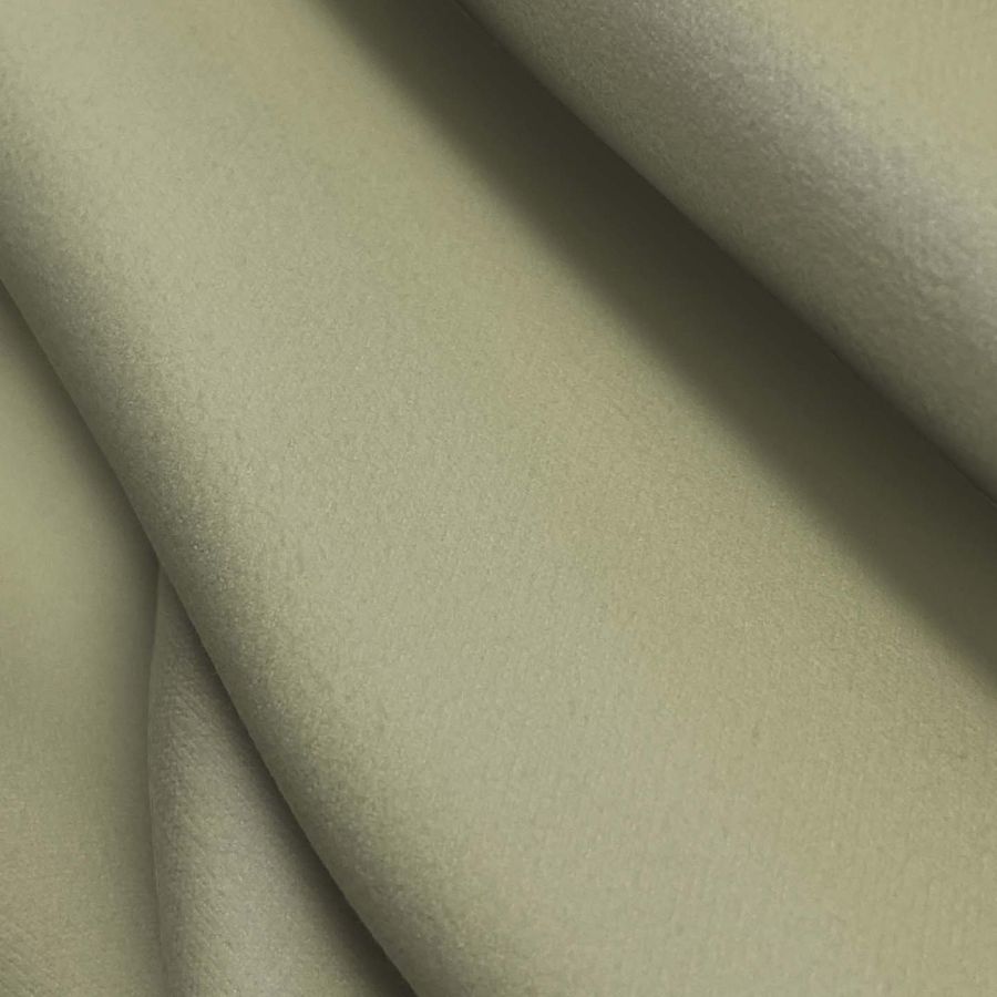 La tela base de esta prenda es Microfibra para Toalla - Swing, con una composición del 100% de poliéster y un gramaje de 200 gr/m2. Su ancho de 160 cm y su temporada de uso es el verano. El color liso impreso en la tela base es un verde camuflaje, cuya combinación de tintas CMYK comprende 32 de cian, 24 de magenta, 48 de amarillo y 7 de negro. Este color es altamente simbólico, representando la naturaleza y la ecología, ya que se asocia con el camuflaje de las hojas y la vegetación. Combina particularmente con tonos terrosos y neutros, como el beige, la gama de marrones y el amarillo mostaza.