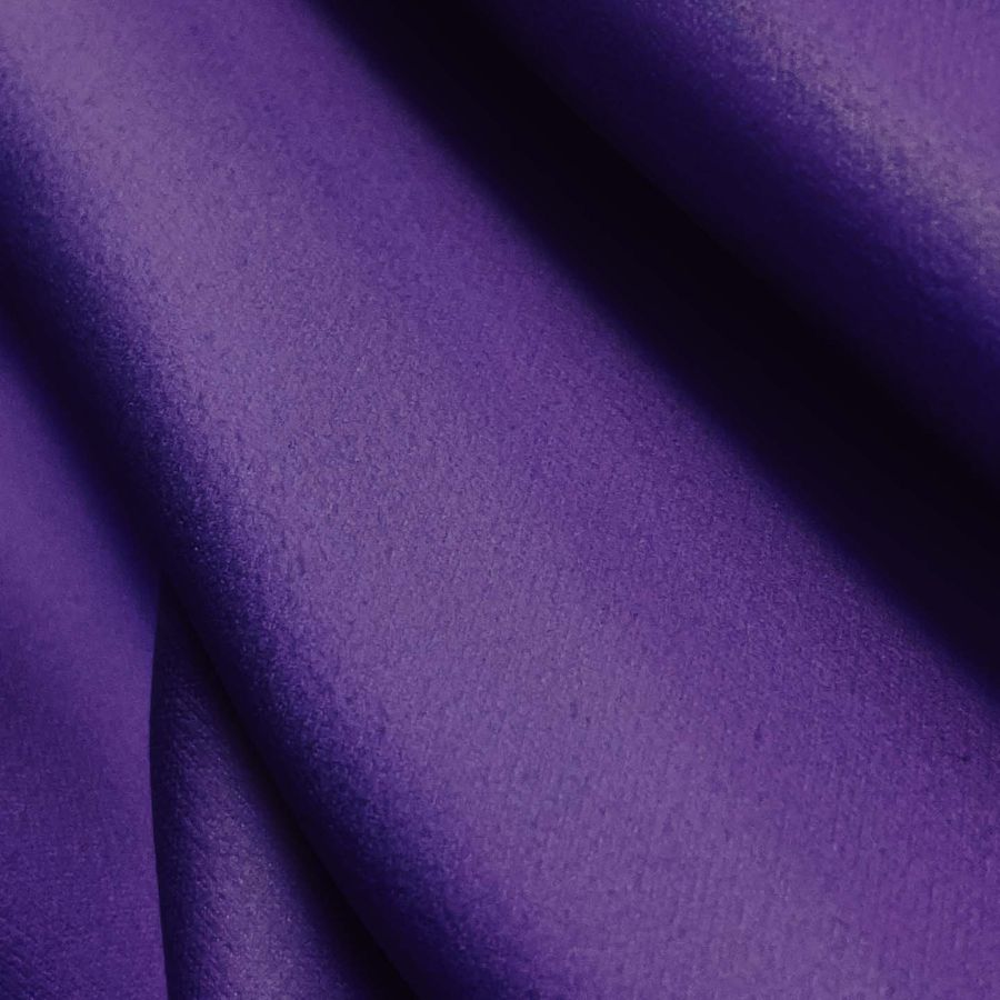 La tela base, Microfibra para Toalla-Swing, tiene una composición de 100% poliéster y un gramaje de 200 gr/m2. Su ancho es de 160 cm y cuenta con varias aplicaciones, como toallas de baño o albornoces deportivos. El color liso impreso en esta tela es una combinación de morado e índigo, con una tinta cyan del 88%, una tinta magenta del 100%, una tinta yellow del 14% y una tinta black del 4%. Este color secundario tiene una tonalidad similar a la flor de la jacaranda, con un toque relajante y elegante, y combina muy bien con el azul marino, el blanco y el gris claro. Cabe destacar que la tela está impresa con el color liso a una sola cara por impresión digital textil