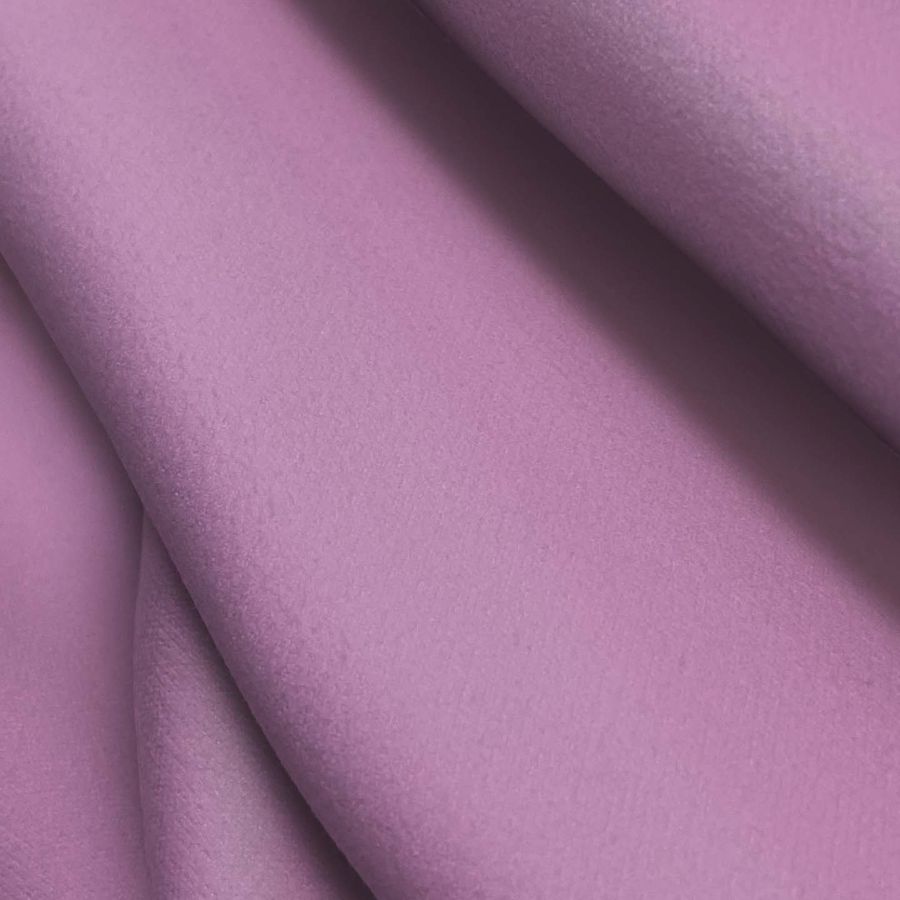La tela base de esta prenda es una microfibra de poliéster llamada "Microfibra para Toalla - Swing", pesando 200 gr/m2 y con un ancho de 160 cm. El color liso impreso en esta tela es un tono ciruela-morado con un CMYK de 24 53 5 0, el cual aporta un toque vibrante y elegante al tejido. Este color es un secundario que combina muy bien con tonos grises, marrones y verdes, y puede ser utilizado en prendas para diferentes ocasiones.