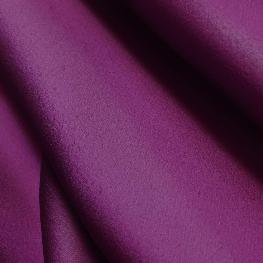 La tela base de este tejido es la Microfibra para Toalla - Swing, fabricada con 100% poliéster, con un gramaje de 200 gr/m2 y un ancho de 160 cm. En cuanto al color liso impreso, se trata de un Morado Berenjena con un CMYK de 58 100 29 27, lo que significa que predominan los tonos magenta y cian en su composición, aunque también cuenta con un notable porcentaje de tinta negra y amarilla. Este color secundario tiene cierta sofisticación y elegancia, similar a una tonalidad entre el púrpura y un rojo oscuro. En cuanto a su combinación, funciona muy bien con tonos neutros como el blanco o el negro, pero también con grises más cálidos o con tonos más vivos como el verde bosque o el amarillo mostaza.