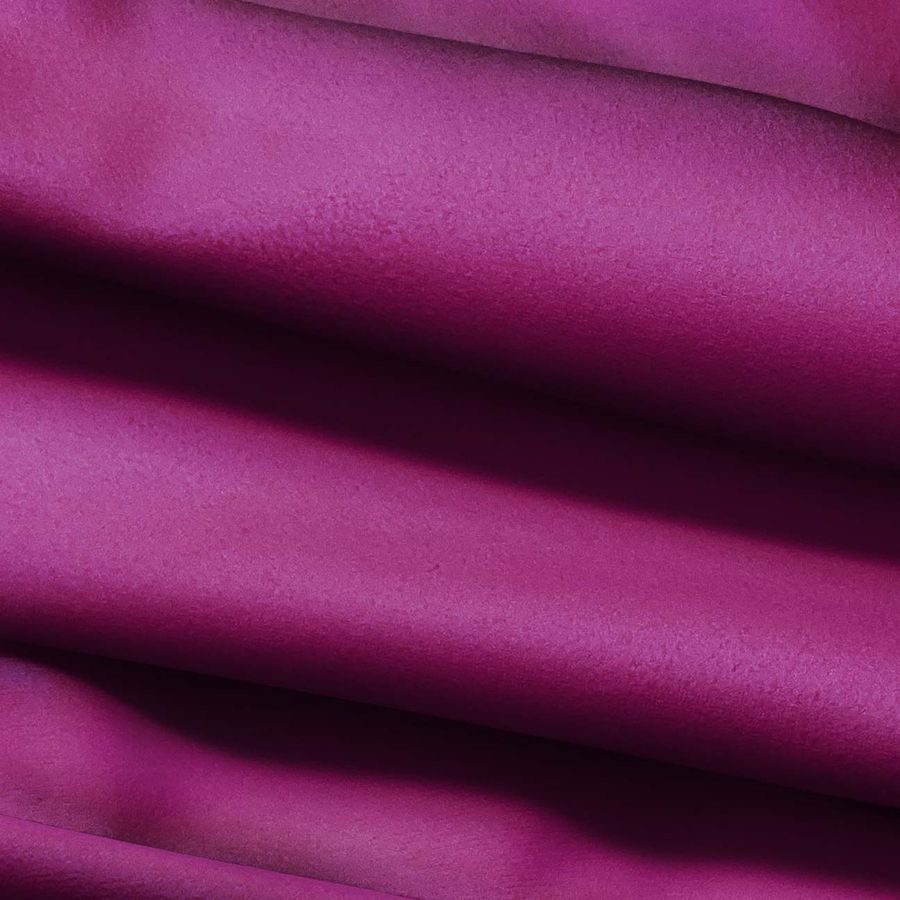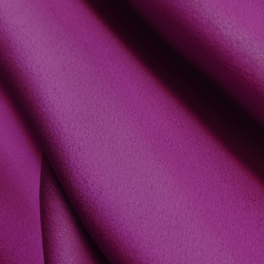 La tela base de este tejido es microfibra para toalla, compuesta 100% de poliéster con un gramaje de 200 gr/m2 y una anchura de 160 cm. El color liso impreso es un morado berenjena con una mezcla de tinta cyan de 51%, tinta magenta de 100%, tinta yellow de 19% y tinta black de 13%, lo que da lugar a un CMYK de 51 100 19 13.