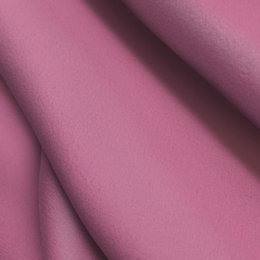 La tela base es una Microfibra para Toalla con un gramaje de 200 gr/m2 y una composición de 100% poliéster, con un ancho de 160 cm. El color liso impreso es un hermoso tono de rosa, con matices Cadillac, que se logra con la combinación de tintas CYMK en proporciones de 18 64 18 1. Este color secundario tiene una tonalidad suave y elegante, y combina a la perfección con tonos verdes, azules y amarillos.