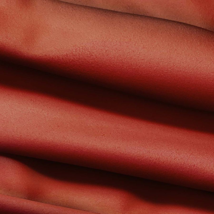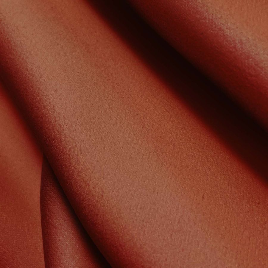 La tela base es la Microfibra para Toalla - Swing, con una composición de 100% poliéster y un gramaje de 200 gr/m2. El color liso impreso es Rojo Oscuro, que se obtiene mediante la técnica de sublimación con un CMYK de 27 85 92 28. Este color secundario simboliza la pasión y el poder, además, combina muy bien con colores como el blanco, negro, gris y mostaza.