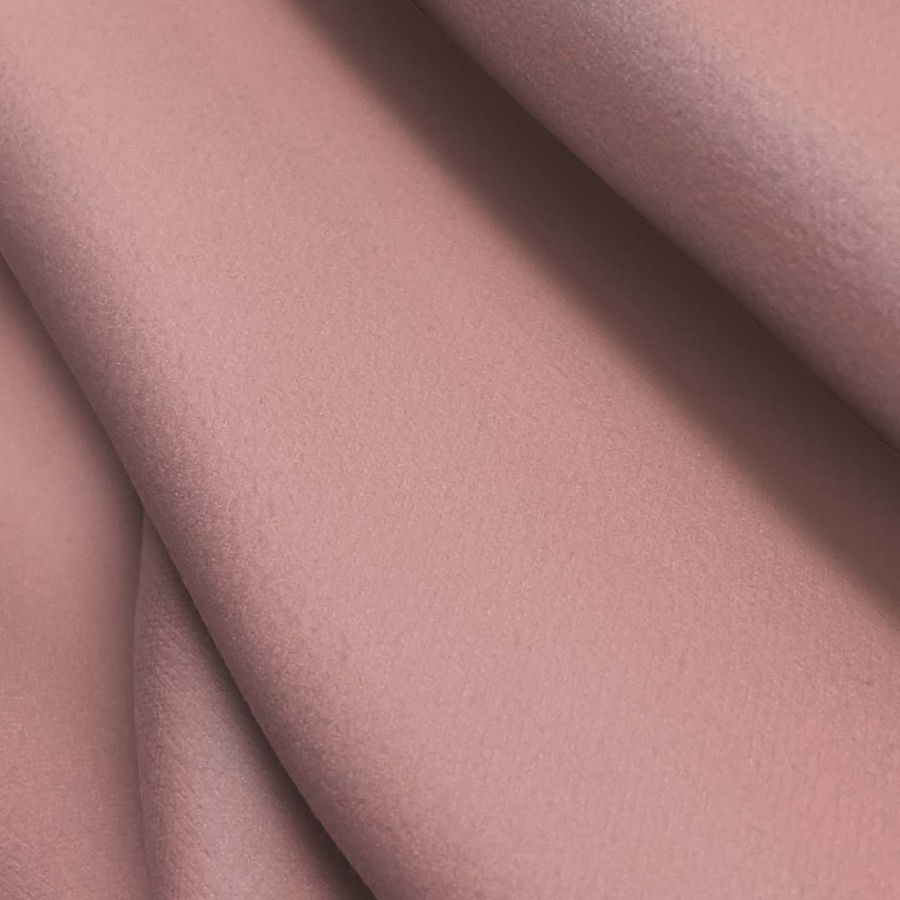 La tela base es la Microfibra para Toalla - Swing, compuesta por 100% poliéster, con un gramaje de 200 gr/m2 y un ancho de 160 cm. El color liso impreso es una combinación de rosa y marrón, con una tinta cyan del 13, tinta magenta del 46, tinta yellow del 33 y tinta black del 2, en una representación de CMYK del 13 46 33 2. Este color secundario combina muy bien con tonos como el beige, el blanco, el gris y el negro, ya que crea un equilibrio entre la calidez y la sofisticación.