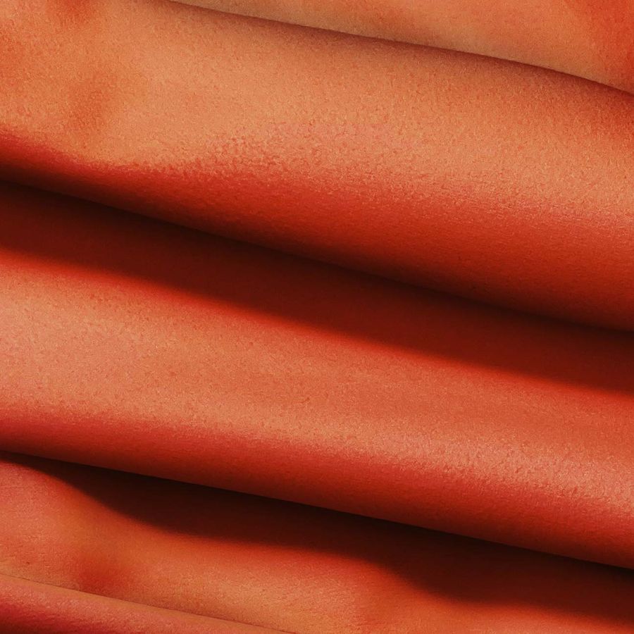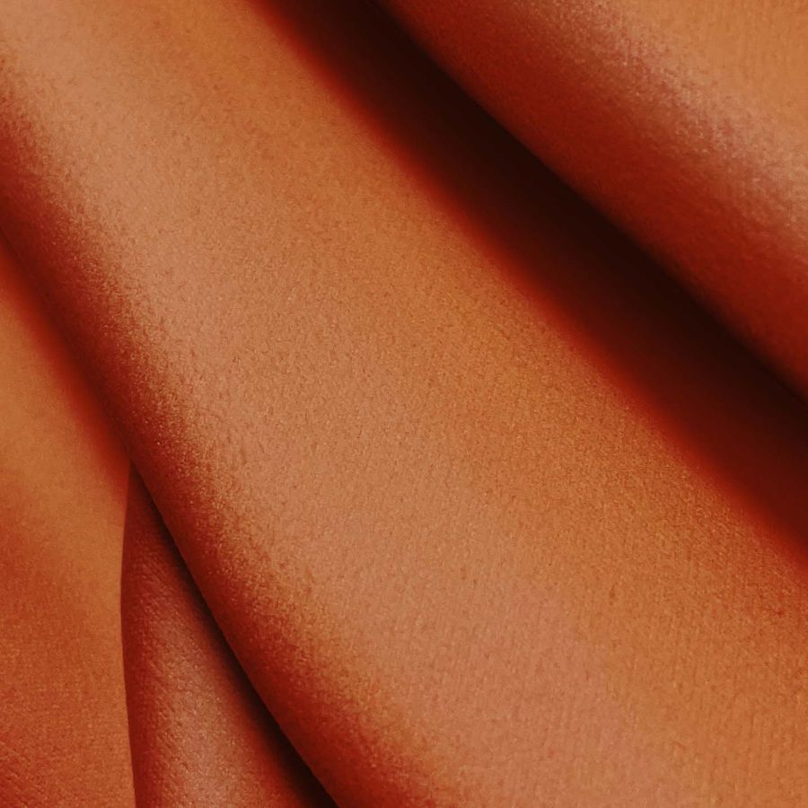 La tela base es la Microfibra para Toalla - Swing, una tela de microfibra de 100% poliéster con un gramaje de 200 gr/m2 y un ancho de 160 cm. El color liso impreso es Naranja Toronja, y su CMYK es de 16 77 92 5, lo que indica que es un color vibrante y cálido con un alto contenido en amarillo y magenta, y un bajo porcentaje de negro. Combina bien con tonos tierra, azules y verdes, y se puede usar en diferentes ambientes y estilos decorativos.
