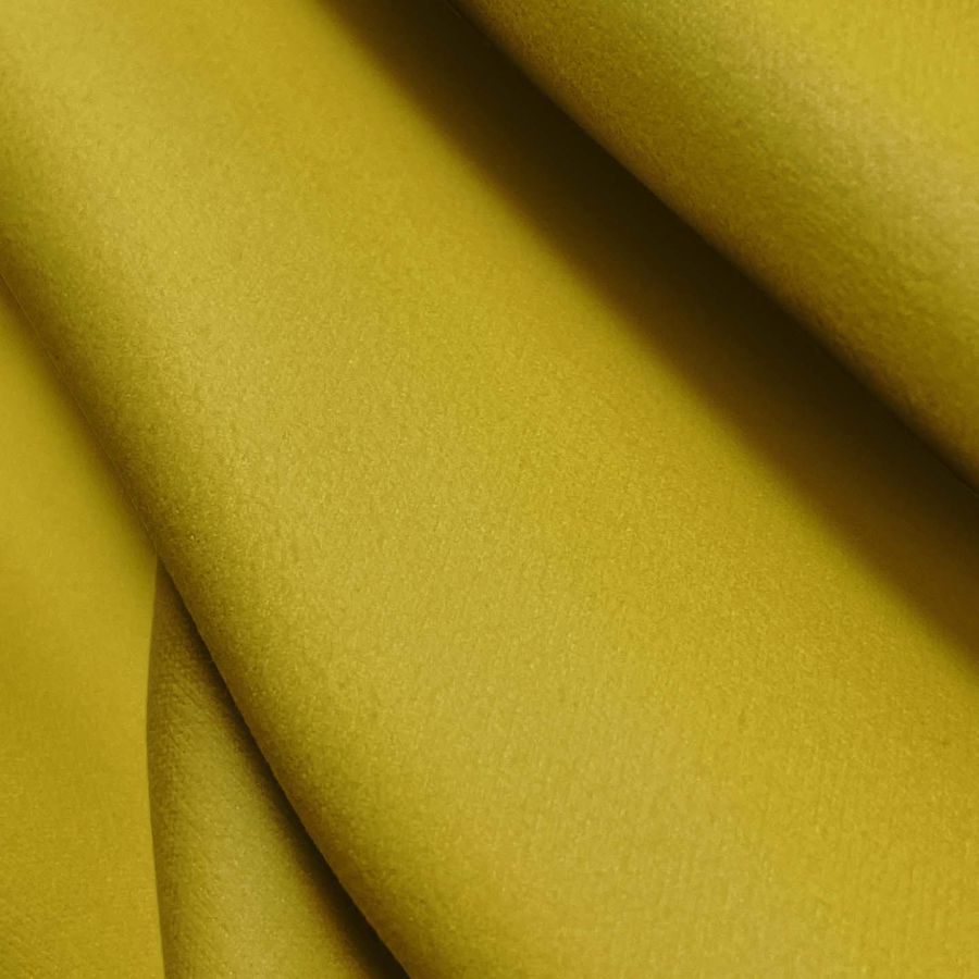 La tela base de este tejido es Microfibra para Toalla - Swing, de composición 100% poliéster, con un gramaje de 200 gr/m2 y un ancho de 160 cm. El color liso impreso en esta tela es amarillo/marrón galleta, con una tinta cyan del 20, magenta del 29, yellow del 98 y black del 7, con un CMYK de 20 29 98 7. Este color secundario presenta una combinación atractiva y original, que combina perfectamente con tonalidades neutras y tierra.