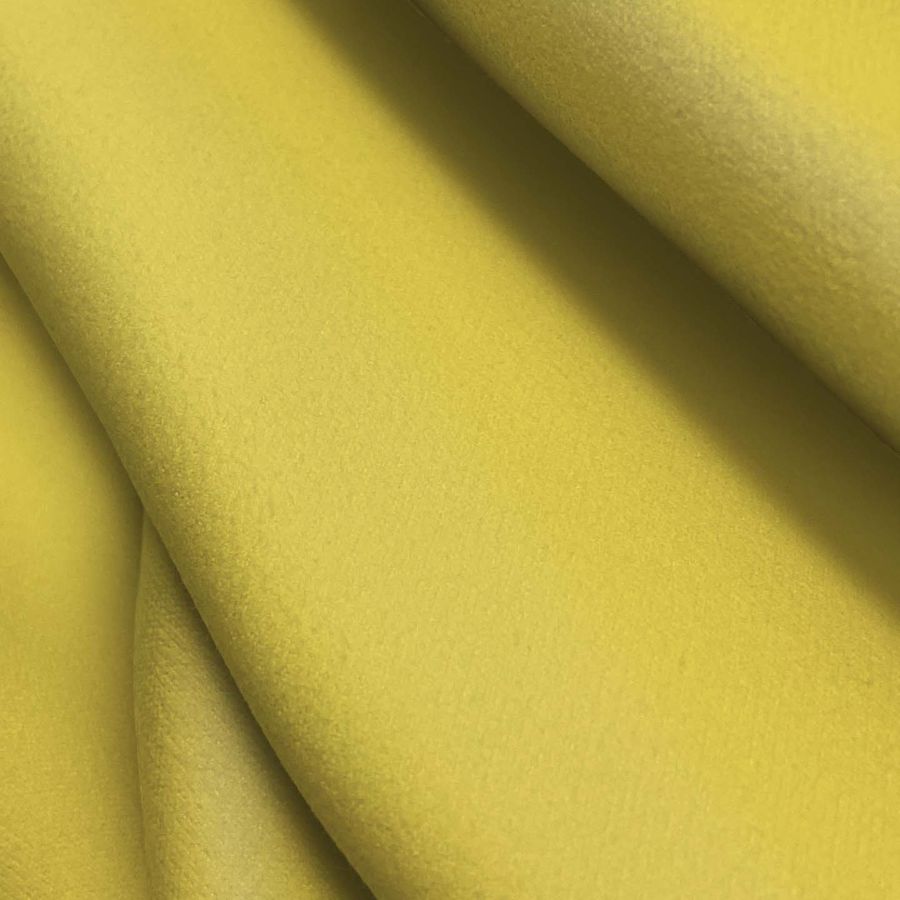 La tela base de este tejido es Microfibra para Toalla - Swing, de composición 100% poliéster, con gramaje de 200 gr/m2 y ancho de 160 cm. El color liso impreso es Amarillo Patito de goma, representado por el contenido del CMYK: 7 14 76 0. Este tono amarillo suave y alegre se combina muy bien con verdes, naranjas y blancos.