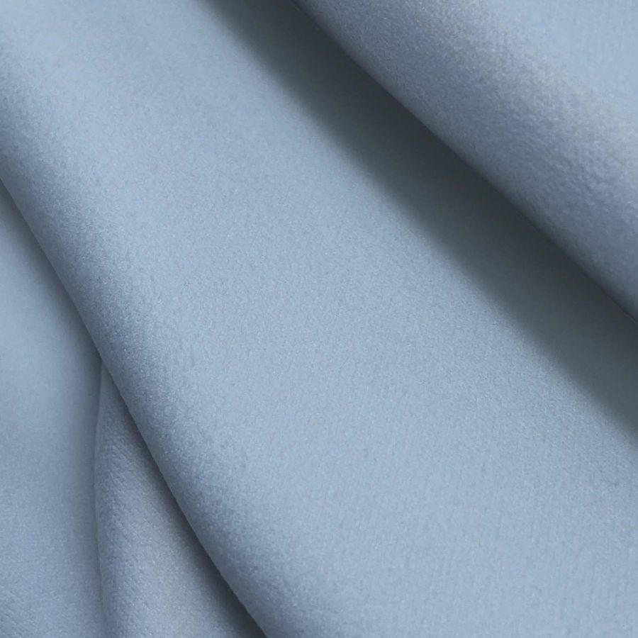 La tela base Microfibra para Toalla -Swing es una tela de microfibra compuesta al 100% por poliéster, con un gramaje de 200 gr/m2, un ancho de 160 cm y una temporada indicada para el verano. El color liso impreso de esta tela es una combinación de azul y gris azulado, con una tinta cian del 40%, una tinta magenta del 19%, una tinta amarilla del 7% y sin tinta negra, con un CMYK de 40 19 7 0. Este color secundario es un tono frío y relajante, que combina muy bien con tonalidades más oscuras de la gama del gris y con tonalidades más claras de la gama del azul.