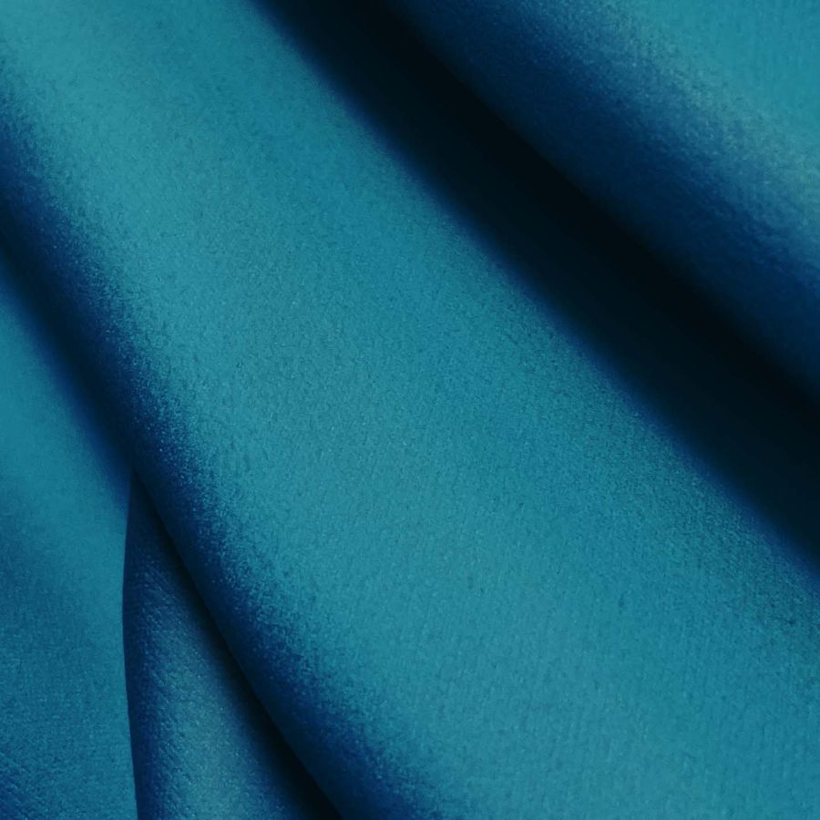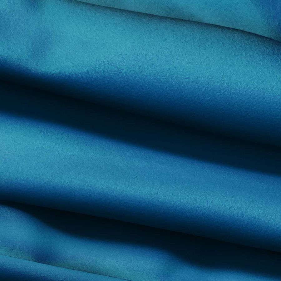 La tela base es una microfibra de poliéster de 200 gr/m2, con ancho de 160 cm y cuidados específicos que incluyen no blanquear, lavar a temperatura máxima de 30ºC y evitar planchar y secar en secadora. En cuanto al color liso impreso, es un azul con una combinación CMYK de 89 48 29 13, que se traduce en un tono intenso y vibrante similar al de los ojos azules. Este color combina especialmente bien con tonos verdes, marrones y grises, aunque también puede ser una buena opción para combinar con tonos rojos, naranjas o blancos. La tela está impresa con este color liso a una sola cara por impresión digital textil, lo que significa que no se trata de un tejido tintado, sino impreso por una sola cara.