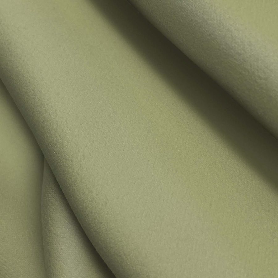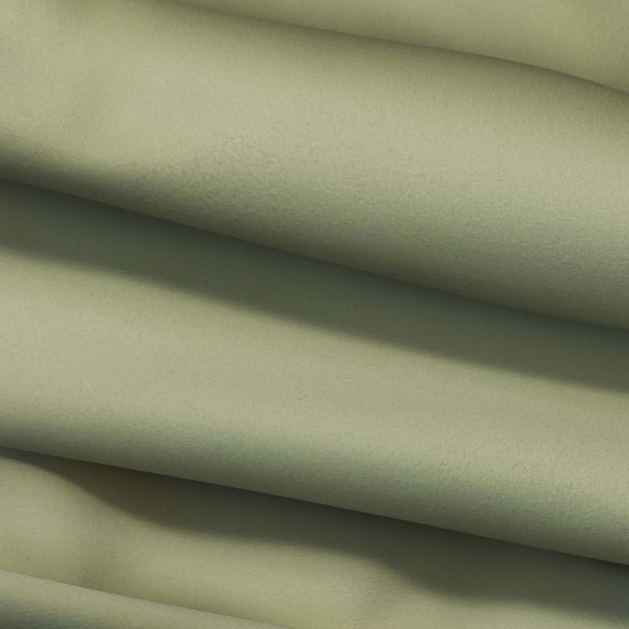 La tela base es la Microfibra para Toalla - Swing, compuesta por 100% poliéster con un gramaje de 200 gr/m2 y un ancho de 160 cm. El color liso impreso es un verde helecho con un CMYK de 37 25 56 7, lo que indica una presencia dominante de la tinta amarilla y una menor cantidad de tinta cian, magenta y negra. Este color transmite una sensación de equilibrio y frescura, y combina bien con tonos neutros como el blanco y el gris, así como con naranjas y amarillos más vivos.