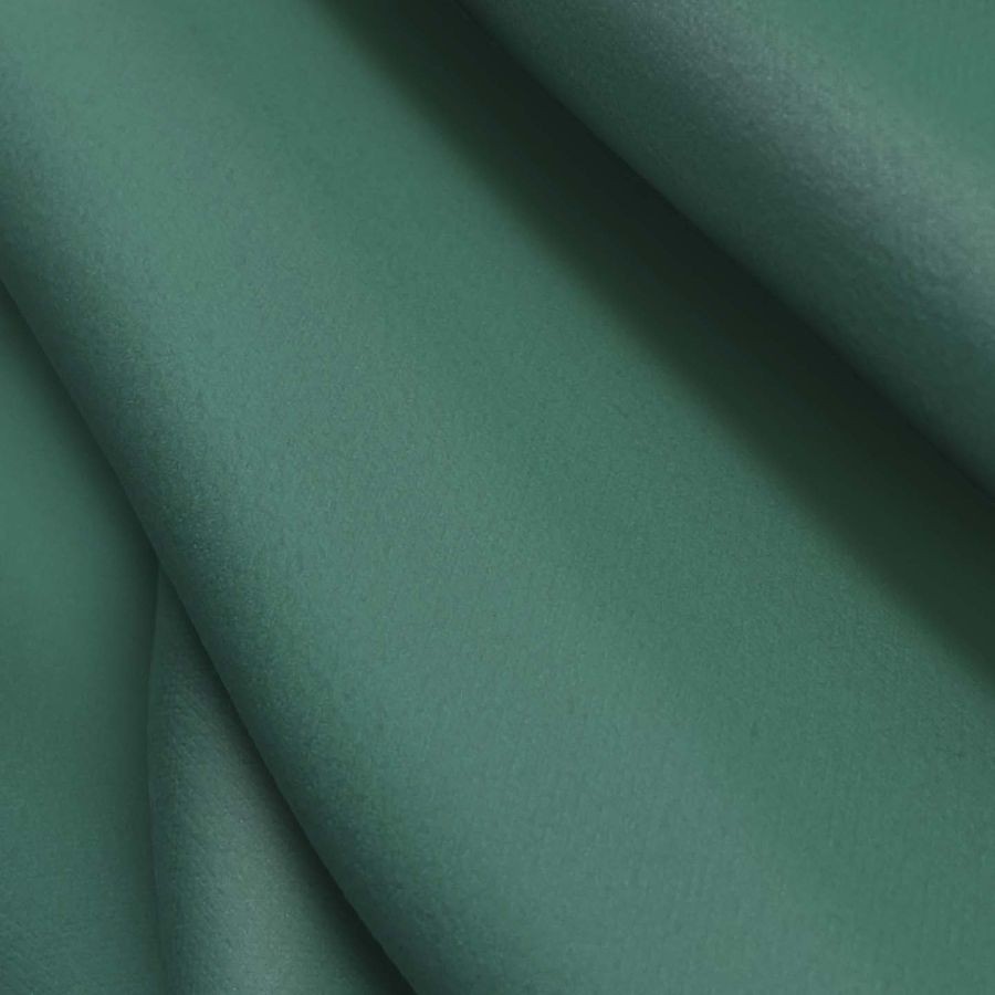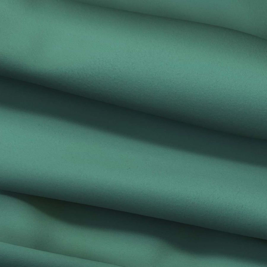 La tela base es una Microfibra para Toalla - Swing, 100% POLIÉSTER con gramaje de 200 gr/m2 y ancho de 160 cm. El color liso impreso es un verde menta oscura, con un CMYK de 71 33 57 18, y se imprime a una sola cara por impresión digital textil. La tela tiene una textura suave y lisa al tacto.