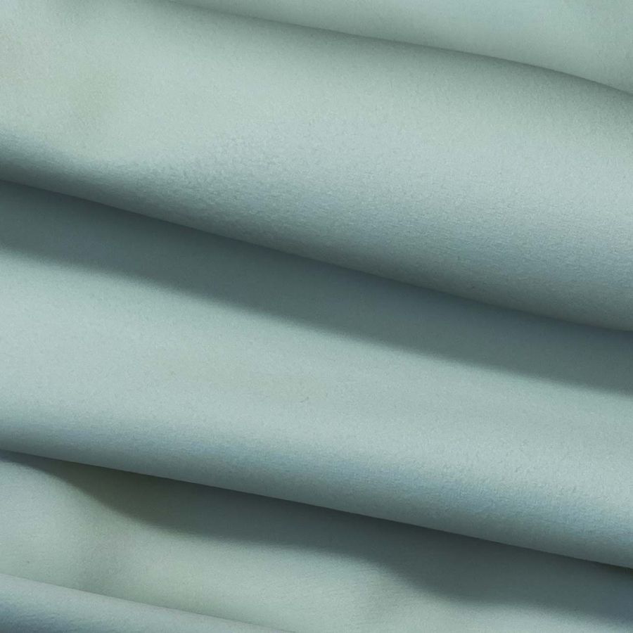 La tela base es la Microfibra para Toalla - Swing, compuesta por 100% poliéster y con un gramaje de 200 gr/m2. El color liso impreso es un verde mar opaco con los siguientes atributos: tinta Cyan 39, tinta Magenta 10, tinta Yellow 28 y tinta Black 0, lo que da como resultado un CMYK de 39 10 28 0. Este color secundario transmite una sensación de tranquilidad y frescura, ideal para aplicaciones de toallas y albornoces de uso deportivo o de baño. Además, combina muy bien con tonos claros como el blanco o el beige, así como con tonos más oscuros como el gris o el negro.