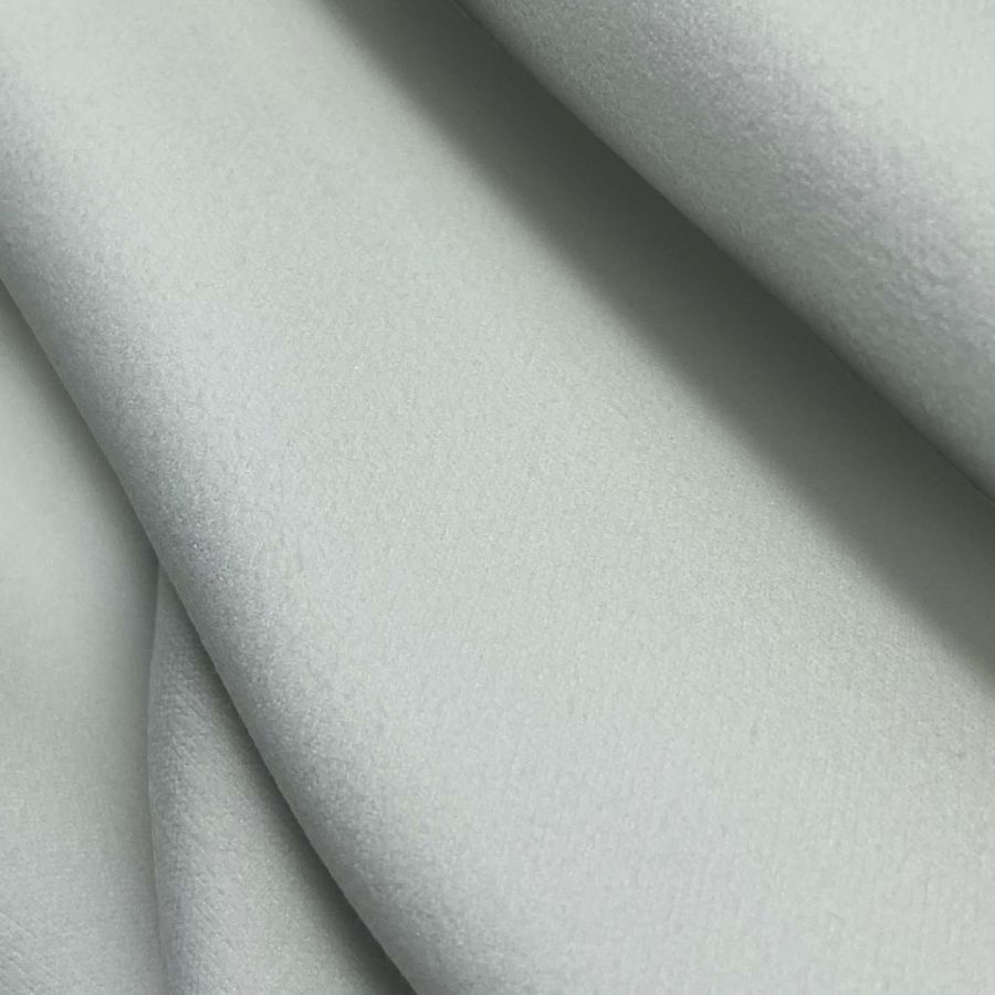 La tela base de este tejido es una microfibra 100% poliéster, con un gramaje de 200 gr/m2 y un ancho de 160 cm. Es de textura suave y lisa al tacto. El color liso impreso en el tejido es Verde Aguamarina Claro, con un CMYK de 18 8 16 0, lo que indica que es un color con baja saturación y luminosidad media. Este color se combina de manera armoniosa con tonos pasteles, especialmente con azules claros y verdes más oscuros. Es importante mencionar que la tela está impresa a una sola cara mediante impresión digital textil, y no está tintada, lo que significa que solo una cara tiene diseño.