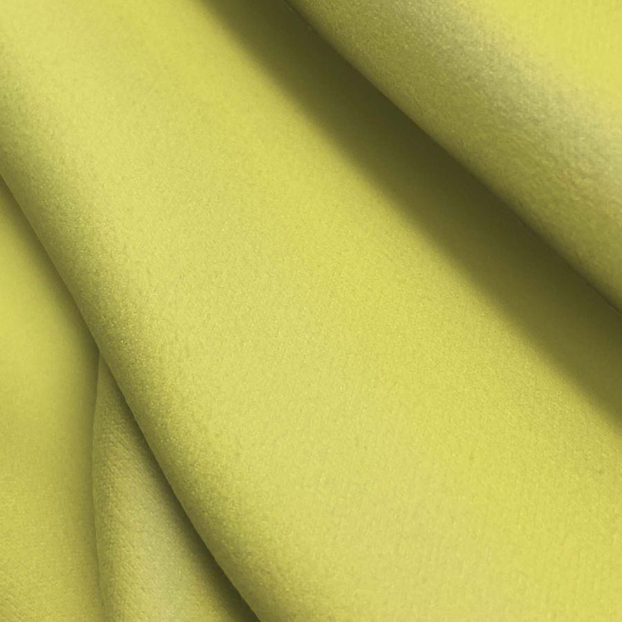 La microfibra para toalla - Swing es un tejido de composición 100% poliéster con un gramaje de 200 gr/m2 y un ancho de 160 cm. En cuanto al color, se trata de un amarillo intenso similar al amarillo canario CMYK (9 0 68 0).