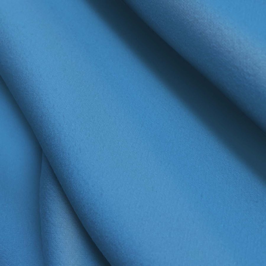La tela base es la Microfibra para Toalla - Swing, con una composición del 100% POLIÉSTER y un gramaje de 200 gr/m2. El color liso impreso es Azul seda, cuyo CMYK es 72 34 2 0, destacando una tonalidad suave y elegante. Este color se combina especialmente bien con tonos neutros como el blanco y el gris, permitiendo crear ambientes relajantes y frescos.