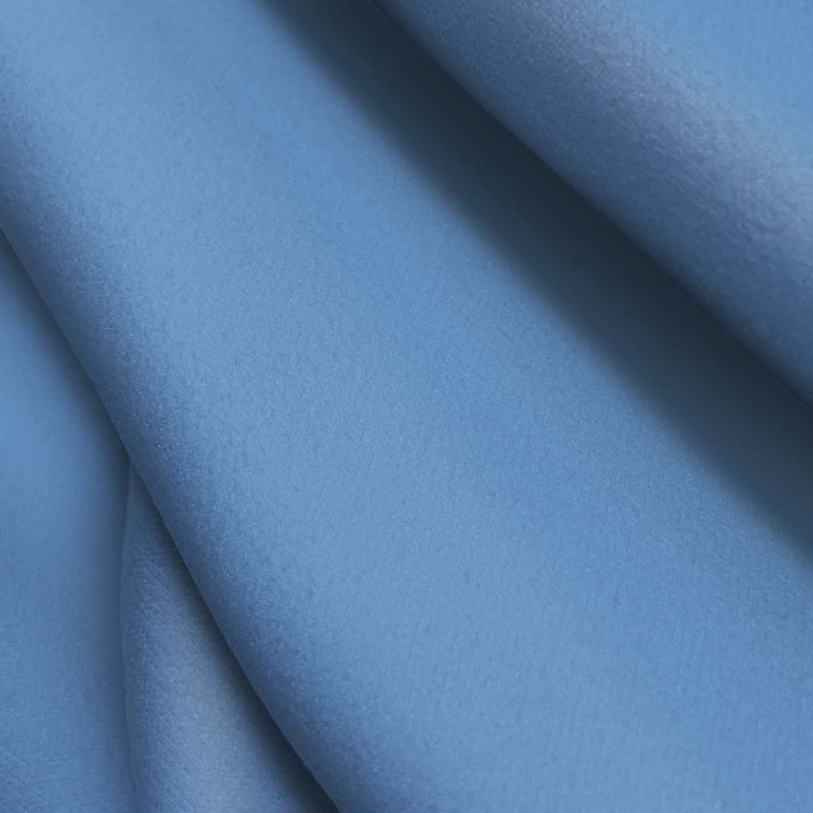 Esta tela es la Microfibra para Toalla - Swing, de composición 100% POLIÉSTER en un gramaje de 200 gr/m2 y un ancho de 160 cm. El color liso impreso es un tono azul Iceberg, con un CMYK de 62 33 3 0. Este color secundario transmite tranquilidad y frescura, combinando perfectamente con colores neutros como el blanco y el gris. La tela está impresa a una sola cara por impresión digital textil.