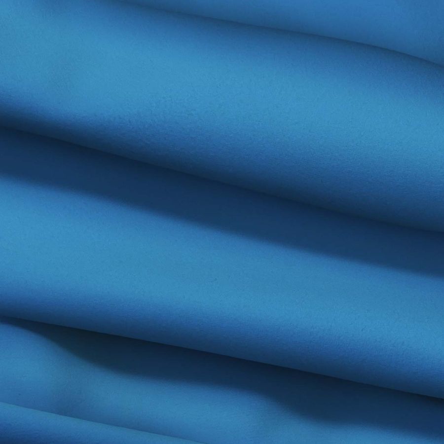 La tela base de este tejido es la microfibra para toalla - Swing con una composición del 100% poliéster, un gramaje de 200 gr/m2, un ancho de 160 cm y un cuidado que no acepta blanqueadores, admite una temperatura máxima de 30ºC, no admite lavado en seco, no admite planchado y no se puede secar con secadora. El color liso impreso es un tono azul Windows, con un CMYK de 81 48 4 0. Este color representa calma, tranquilidad y frescura, y combina especialmente bien con tonos grises y blancos. Es importante destacar que el tejido está impreso por una sola cara utilizando la tecnología de impresión digital textil.