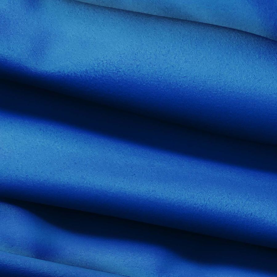 La tela base es la Microfibra para Toalla - Swing, compuesta al 100% de poliéster, con un gramaje de 200 gr/m2 y un ancho de 160 cm. El color liso impreso es un hermoso tono de azul zafiro, con un CMYK de 96 67 5 0. Este predominio de tonos azules produce un efecto relajante y sugiere tranquilidad. Combinado con otros colores, el azul zafiro se ve sumamente elegante con tonos plateados, blancos y negros.