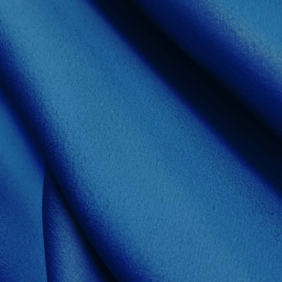 La tela base de esta tela es microfibra de poliéster de 200 gr/m2 y un ancho de 160 cm, con un tono azul arándano impreso con tinta sublimada en una sola cara con un CMYK de 100 75 7 0. El color secundario es predominantemente azul oscuro con un matiz rojizo, lo que le da un toque de profundidad y sofisticación al tejido. Combina muy bien con colores brillantes como el blanco, el amarillo y el rosa pálido, creando una armonía de tonos.