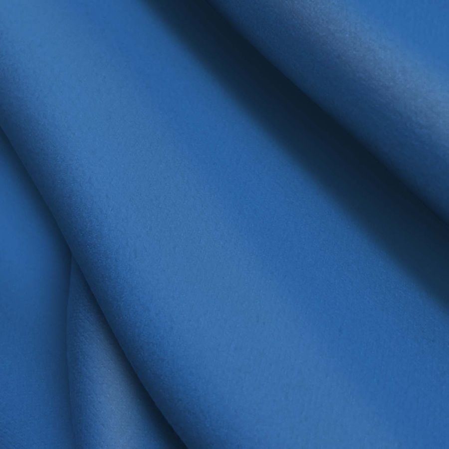 La tela base es Microfibra para Toalla - Swing de 100% poliéster, con un gramaje de 200 gr/m2 y un ancho de 160 cm. El color liso impreso es Azul Windows, que resulta de una combinación de tinta cian (83), magenta (54), amarilla (5) y negra (0) con un perfil de color CMYK de 83 54 5 0. Este color es una variante del azul, con un tono ligeramente verdoso y una intensidad media. Combinado con blanco o gris, crea un efecto fresco y moderno, mientras que su contraste con tonos cálidos como el naranja o el amarillo lo hace vibrante y contrastante.