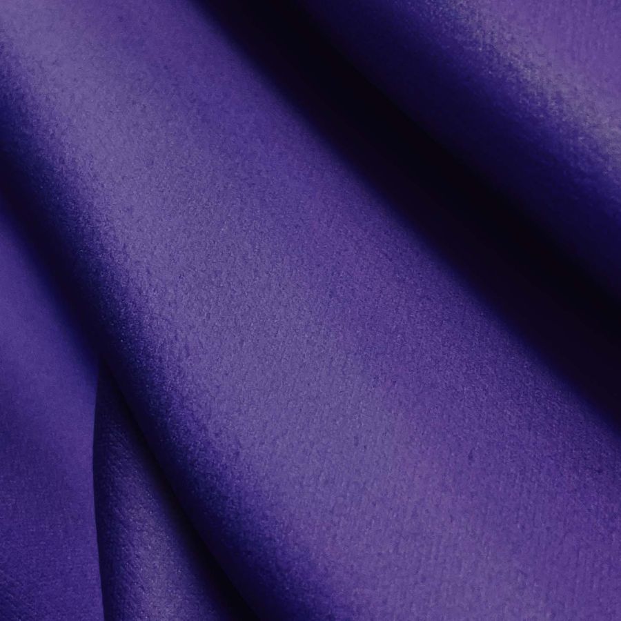 La tela base es una microfibra para toalla llamada Swing, compuesta por 100% poliéster, con un gramaje de 200 gr/m2 y un ancho de 160 cm. El color liso impreso es Morado Monstruo, cuyo CMYK es 94 100 11 3, destacando por su tonalidad oscura y profunda. El color secundario aporta una simbología interesante y evocadora, relacionándose con el misterio y la fantasía. El Morado Monstruo combina perfectamente con colores como el gris, el blanco, el negro y el rosa pastel. La tela está impresa con el color liso a una sola cara por impresión digital textil, siendo importante destacar que no es un tejido tintado sino impreso por una sola cara.