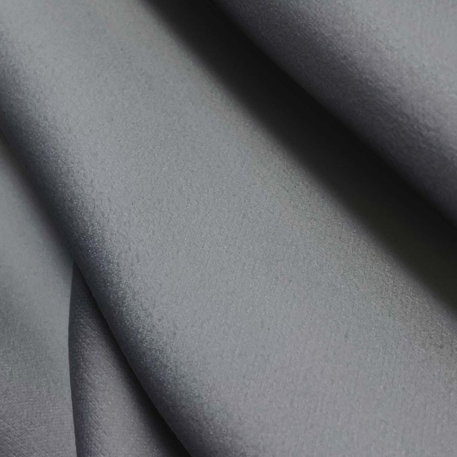 La tela base de esta descripción es la Microfibra para Toalla - Swing, compuesta al 100% de poliéster con un gramaje de 200 gr/m2 y 160 cm de ancho. El color liso impreso es un tono de gris acorazado, con una combinación de tintas CYMK de 51, 42, 38 y 20 respectivamente.