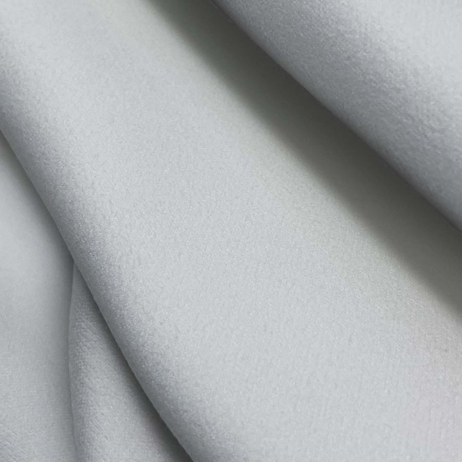 La tela base es Microfibra para Toalla - Swing, compuesta al 100% de poliéster y con un gramaje de 200 gr/m2. El color liso impreso es gris Gainsboro con un CMYK de 16 11 11 0. Este color transmite serenidad y elegancia, se asemeja a un tono plateado suave y combina bien con otros grises más oscuros, negros, blancos y colores brillantes como fucsia o rojo.
