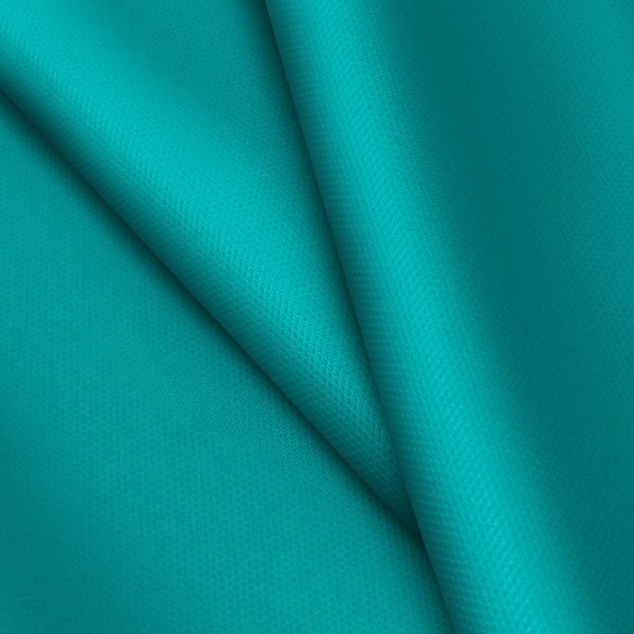 La tela base de este tejido es Piqué para Polo - Durban de tipo Piqué con una composición 100% poliéster, un gramaje de 180 gr/m2 y un ancho de 150 cm. El color liso impreso es verdeazulado, representado por una tinta de cian de 82, magenta de 25, amarillo de 45 y negro de 8 en el CMYK. Este color secundario simboliza la naturaleza y la creatividad, mientras que en términos técnicos, es un color que combina verde y azul con una base de amarillo, lo que lo hace ideal para artículos deportivos y de moda de verano. Además, combina bien con el amarillo, rosa, blanco y gris.