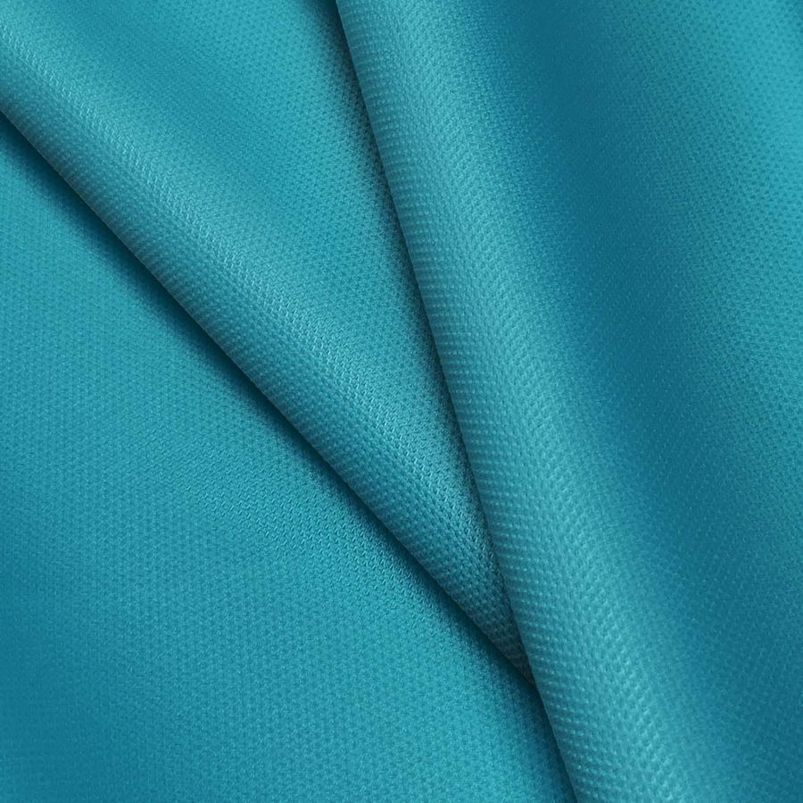 La tela base es Piqué para Polo - Durban, compuesta por 100% poliéster con un gramaje de 180 gr/m2 y un ancho de 150 cm. El color liso impreso es un azul Hosta, que se obtiene con una mezcla de tinta Cyan (84), Magenta (34), Yellow (34) y Black (14), con un CMYK de 84 34 34 14. Este color es un tono secundario suave y fresco, que evoca la naturaleza y transmite calma y serenidad. Combina bien con blancos, grises, verdes y tonos tierra.