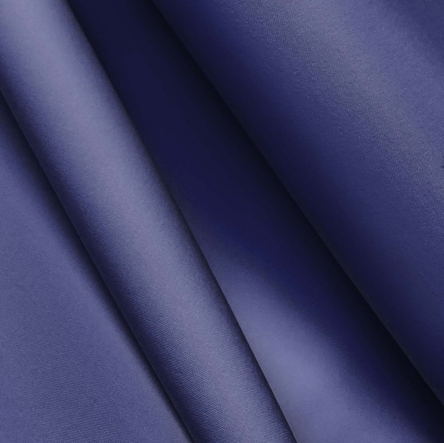 La tela base es el Poliéster Reciclado Deportivo - Basic, con una composición de 93% poliéster y 7% elastómero, un gramaje de 145 gr/m2 y un ancho de 145 cm. El color liso impreso es un hermoso Azul Noche con un CMYK de 93 85 30 22, el cual tiene un toque de azul oscuro que se complementa perfectamente con otros tonos como el blanco o el naranja, permitiendo una amplia gama de combinaciones.
