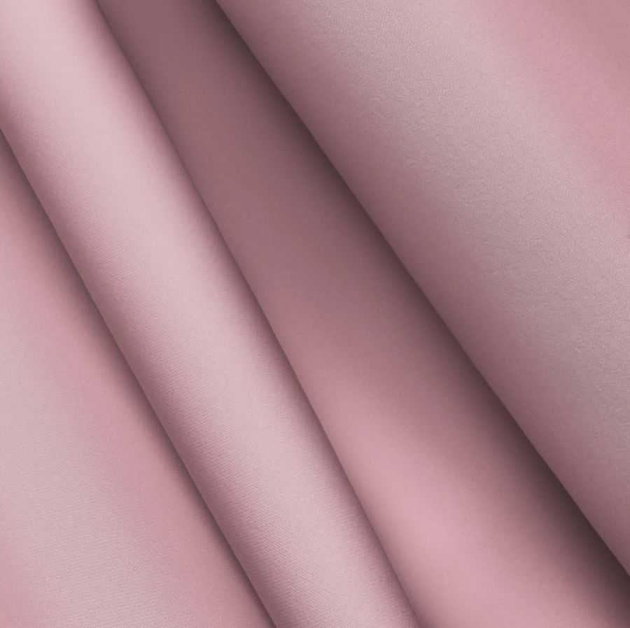 La tela base es el Poliester Reciclado Deportivo - Basic de composición 93% poliéster y 7% elastómero, con un gramaje de 145 gr/m2 y una anchura de 145cm, sostenible y certificada con GRS. El color liso impreso es un rosa marrón con un CMYK de 17 48 28 3. Este color evoca la naturaleza y la calidez, y combina perfectamente con tonos tierra, verde y blanco. Cabe destacar que la impresión es a una sola cara por impresión digital textil, sobre la tela base, que no es tintada, sino impresa.