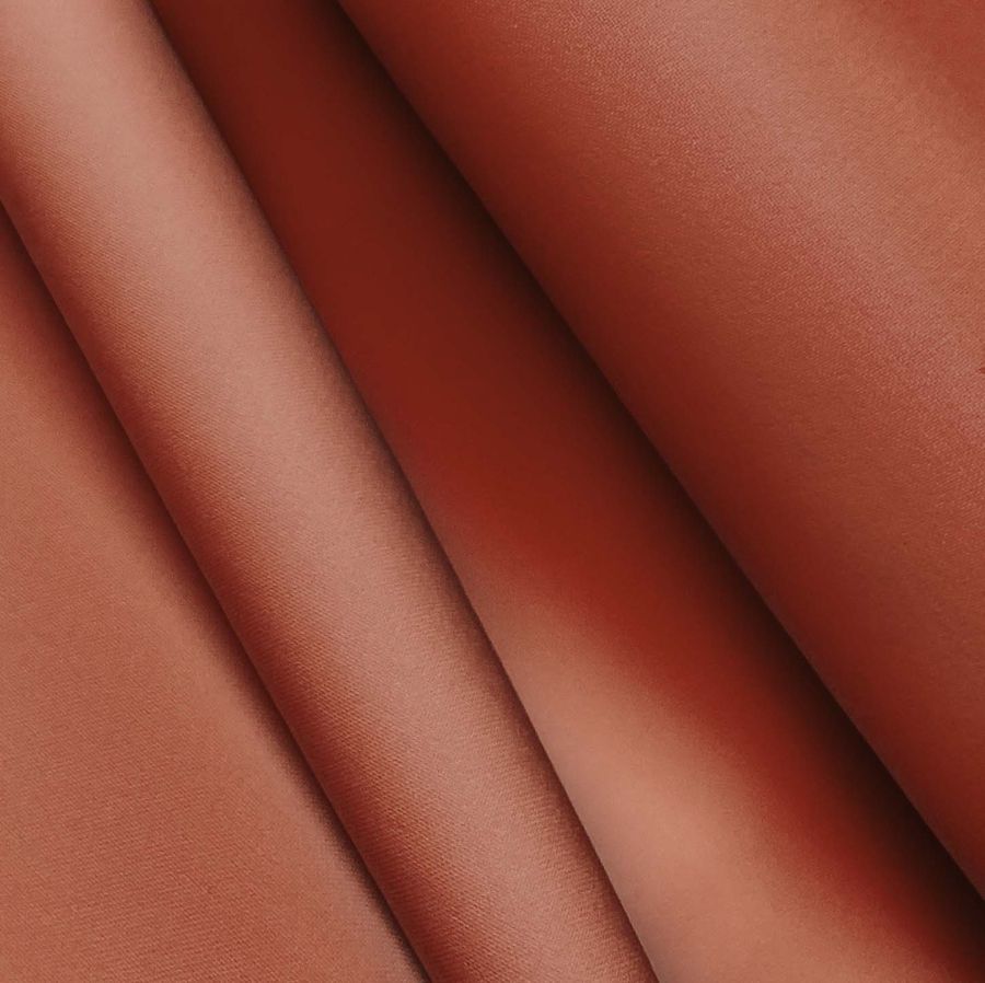 La tela base es el Poliester Reciclado Deportivo - Basic, con una composición del 93% de poliéster y el 7% elastómero, y un gramaje de 145 gr/m2. El color liso impreso en esta tela es una combinación de rojo y castaña, con un contenido de tinta cian de 28, magenta de 79, amarillo de 83 y negro de 27, reflejado en el código CMYK 28 79 83 27. Este color secundario presenta una vibra energética y robusta, evocando la juventud y la vitalidad, además de combinarse bien con tonos tierra y azules, lo cual es ideal para diseños deportivos y de verano. Es importante mencionar que la tela base está impresa con el color liso a una sola cara por impresión digital textil, lo que significa que es un tejido impreso digitalmente y no tinturado.