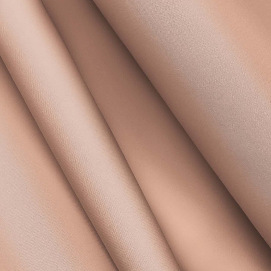 La tela base es Poliéster Reciclado Deportivo - Basic en color blanco con una composición de 93% poliéster y 7% elastómero. El color liso impreso es Naranja-Cobre claro con un CMYK de 11 43 44 2, el cual se caracteriza por su cálido matiz y su aspecto brillante y metálico. Este color combinado con un gris acero puede lograr un ambiente industrial moderno, mientras que su combinación con un azul claro puede proporcionar una sensación de tranquilidad y serenidad.