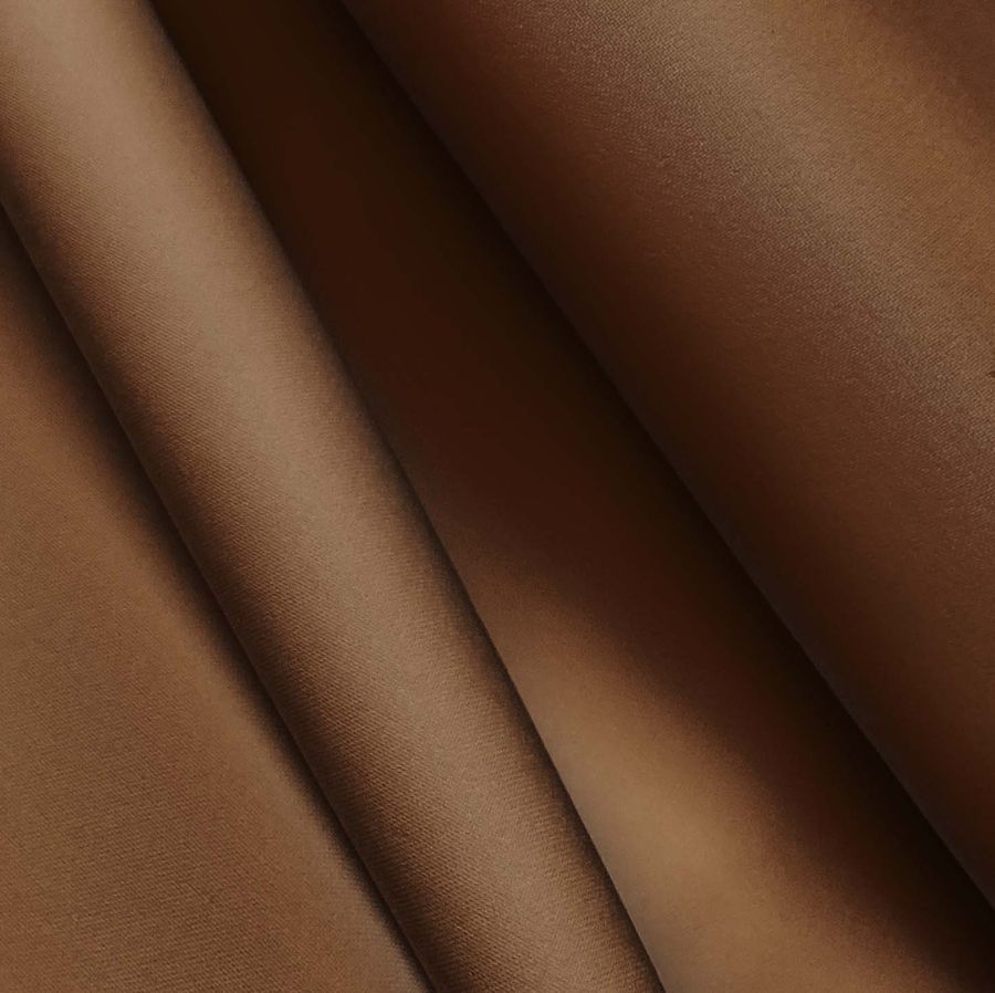 La tela Poliéster Reciclado Deportivo - Basic, con una composición del 93% de poliéster y 7% de elastómero, tiene un gramaje de 145 gr/m2 y un ancho de tela de 145 cm. El color liso impreso es un marrón chocolate con leche con CMYK de 42 73 93 62. El color es un tono cálido y acogedor que transmite una sensación de tranquilidad y bienestar. Combina perfectamente con otros tonos terrosos como el beige, el marrón oscuro o el verde oliva.
