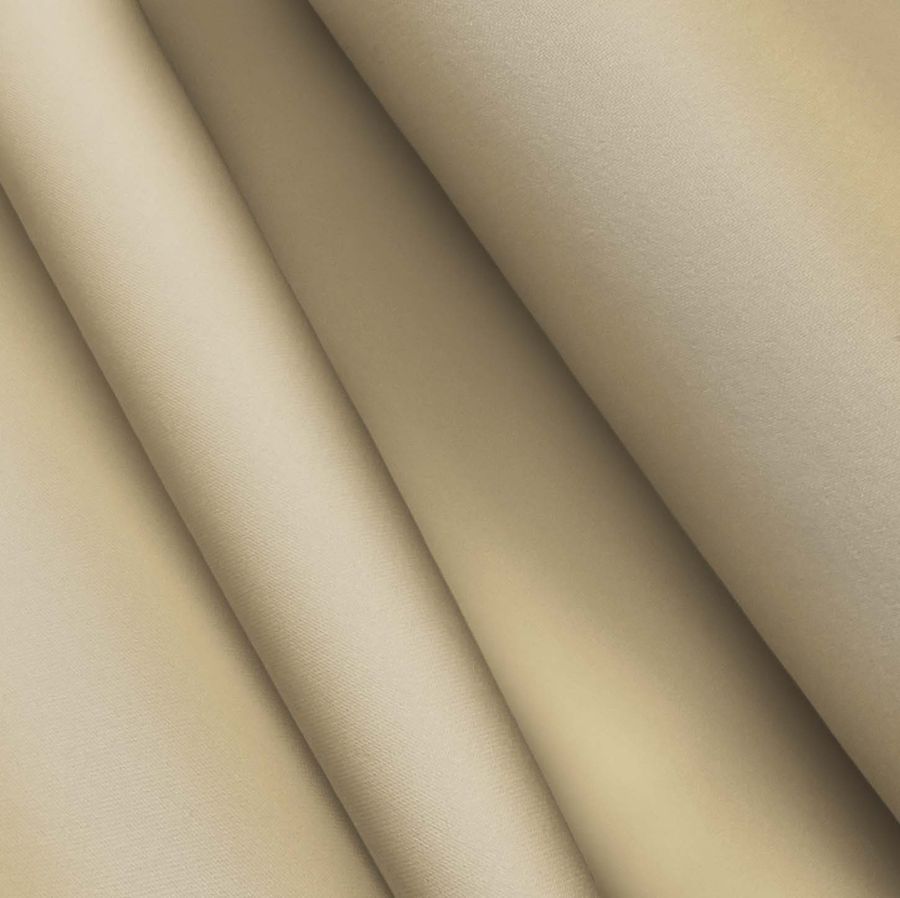 La tela base en cuestión es el Poliester Reciclado Deportivo - Basic, compuesta en un 93% por poliéster y un 7% por elastómero, con un gramaje de 145 gr/m2 y un ancho de 145cm. El color liso impreso en la tela tiene un tono marrón claro con una nota de beige francés, reflejando los valores de CMYK: 20 27 49 5. El color secundario es perfecto para crear un look elegante y natural, y se combina fácilmente con otros tonos terrosos o neutros como el blanco y el negro.
