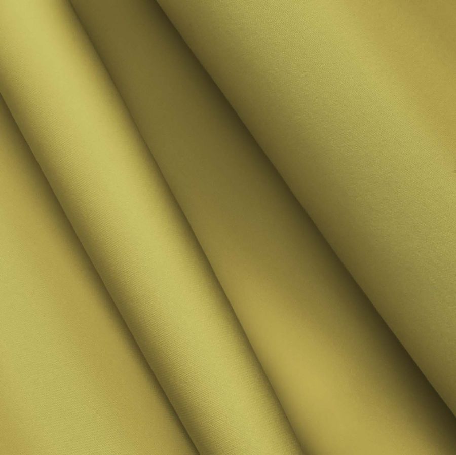 La tela base es Poliéster Reciclado Deportivo - Basic, con una composición de 93% poliéster y 7% elastómero. Su color liso impreso es una combinación de verde y marrón orgánico según el contenido del CMYK de 33 31 79 13. Este color evoca a la naturaleza y transmite una sensación de equilibrio y armonía. Complementa especialmente con tonos tierra, beige, blanco y verde oscuro.