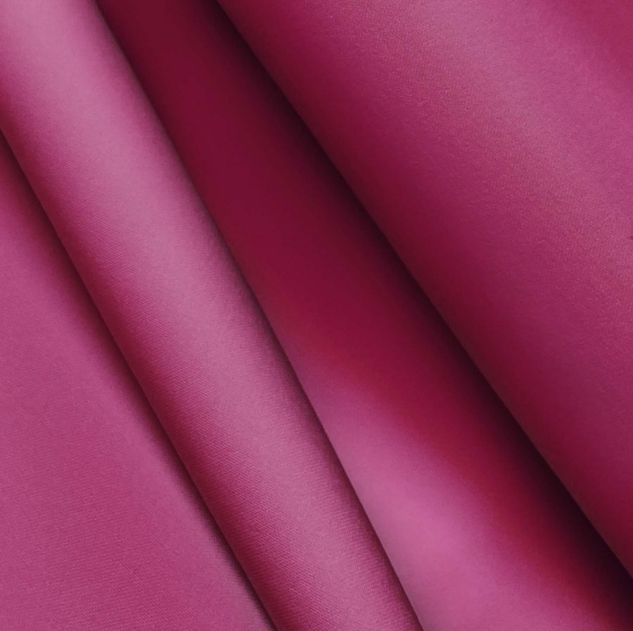 La tela base es Poliéster Reciclado Deportivo - Basic, compuesta por un 93% de poliéster y un 7% de elastómero, con un gramaje de 145 gr/m2 y un ancho de tela de 145 cm. El color liso impreso es un Rojo-Rosa quemado con un CMYK de 30 95 33 24. Este color es rico y vibrante, con una mezcla de tonos rosas y rojos en perfecta equilibrio. Combina muy bien con colores neutros como el gris, el negro y el blanco, así como con tonos pastel como el rosa y el amarillo pálido.