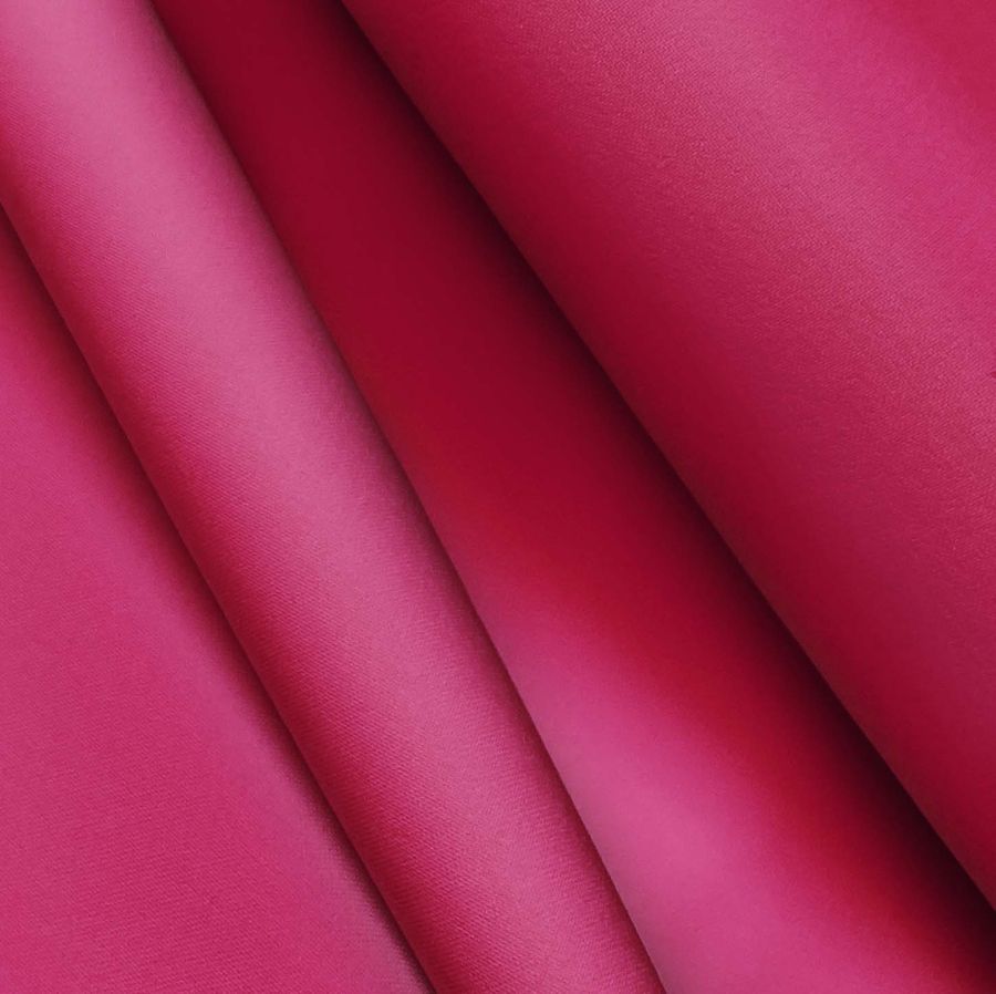 La tela base es el Poliester Reciclado Deportivo - Basic, con una composición de 93% poliéster y 7% elastómero, un gramaje de 145 gr/m2 y un ancho de 145 cm. El color liso impreso es una combinación de rosa y rosa roja, con las siguientes proporciones de tinta CMYK: 20 100 52 12. Este color secundario es suave y delicado, transmite una sensación de dulzura y romanticismo. Combina muy bien con tonos neutros como el gris y el blanco, así como con tonalidades más brillantes como el dorado y el plateado.