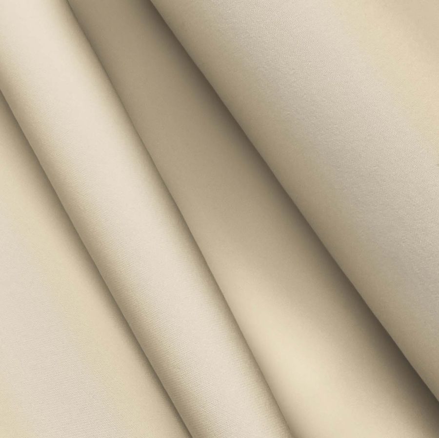 La tela base es Poliester Reciclado Deportivo - Basic de 145 gr/m2 y 145 cm de ancho, compuesta por 93% POLIÉSTER y 7% ELASTÓMERO, de textura y tacto suave y liso. El color liso impreso en esta tela es Crudo-Mocasín con un CMYK de 6 15 35 0, lo que le confiere un aspecto cálido y elegante. Este color secundario es un tono beige pálido con matices amarillos, que combina especialmente bien con tonalidades terracota, grises y azules oscuros.