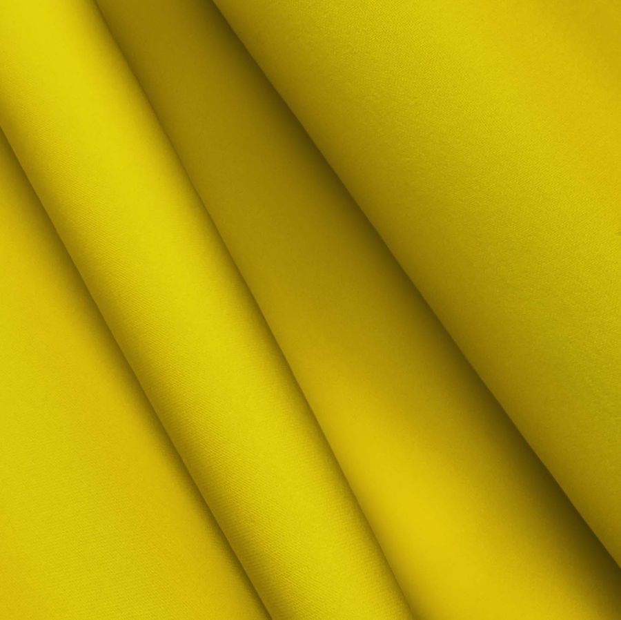 La tela base es el Poliéster Reciclado Deportivo - Basic, compuesta por un 93% de poliéster y un 7% de elastómero, con un gramaje de 145 gr/m2 y un ancho de 145 cm. Está certificada con GRS y es sostenible debido a su material reciclado. El color liso impreso es un llamativo Amarillo profundo con un contenido de CMYK de 13 25 96 2, lo que significa que predominan los colores amarillo y magenta en la mezcla. Este color secundario tiene una gran personalidad y transmite profesionalidad, energía y optimismo. Es perfecto para ser utilizado principalmente en prendas deportivas, combinándolo de manera equilibrada con colores como el blanco y el negro para lograr un contraste más impactante.