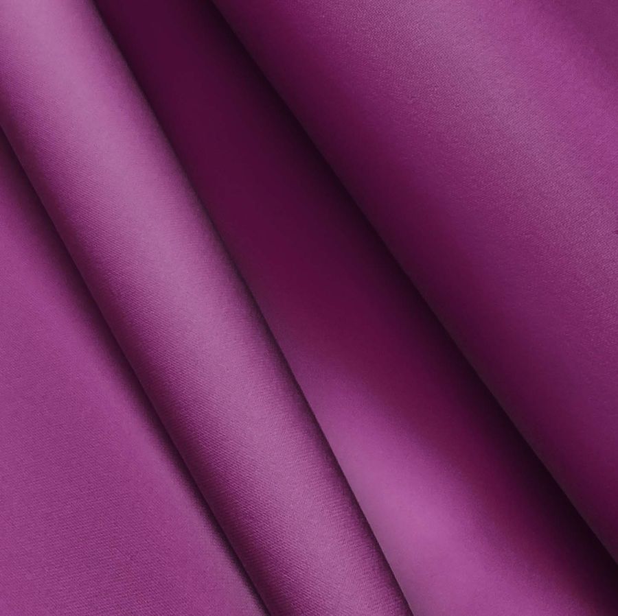 La tela base es el Poliester Reciclado Deportivo - Basic, compuesta por 93% poliéster y 7% elastómero, con un gramaje de 145 gr/m2 y un ancho de 145 cm. El color liso impreso es un Morado Lirio morado, que según los atributos de color indicados posee una tinta Cyan del 58%, Magenta del 99%, Yellow del 25% y Black del 20%. Este color combina con tonos rosas, azules y verdes. Cabe destacar que la tela está impresa con este color liso a una sola cara por impresión digital textil, lo que significa que no es un tejido tintado sino impreso por una sola cara.