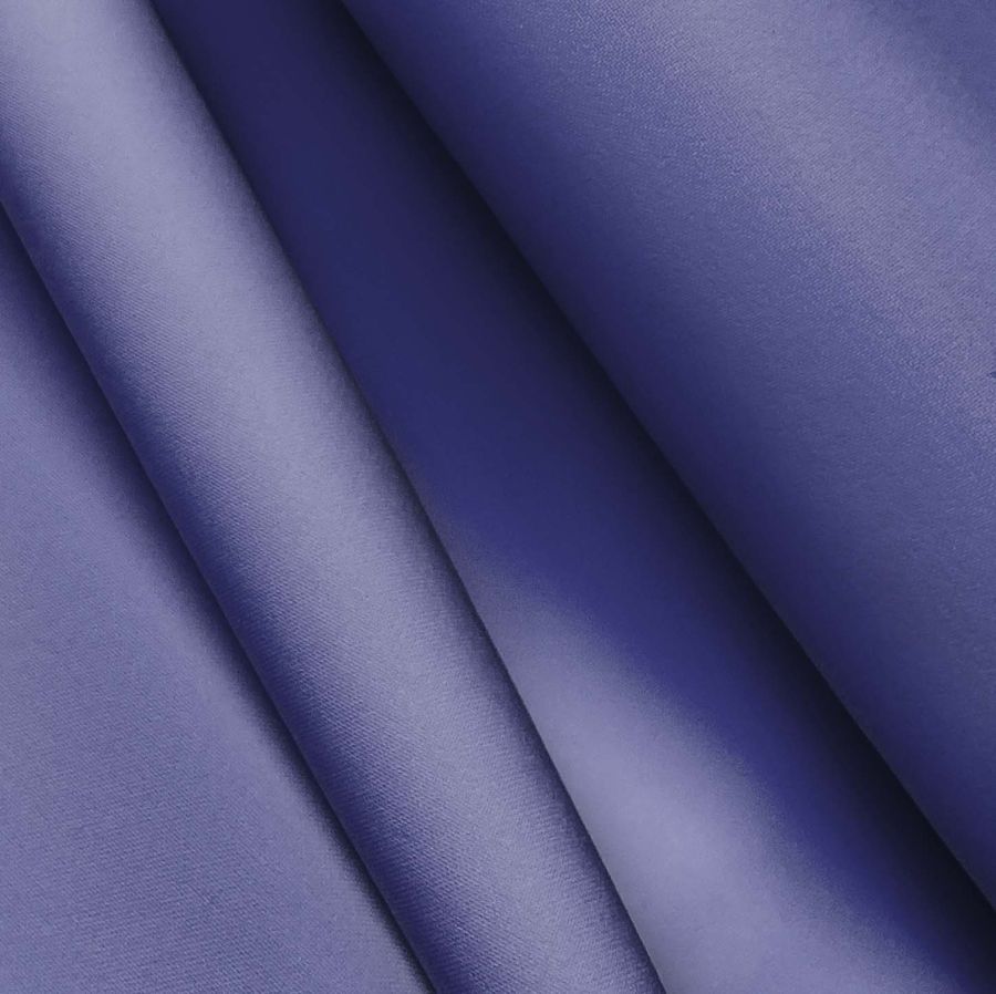 La tela base de este tejido es el Poliéster Reciclado Deportivo - Basic, con una composición de 93% poliéster y 7% elastómero. Su gramaje es de 145 gr/m2 y su ancho de 145 cm. El color liso impreso es un Morado-Azul Marino Púrpura, con una combinación de tinta Cyan de 80, tinta Magenta de 73, tinta Yellow de 22 y tinta Black de 7, lo que da como resultado un CMYK de 80 73 22 7. Este color evoca la serenidad y la estabilidad, dando un toque de sofisticación y elegancia. Además, combina muy bien con tonos grisáceos y cremas.