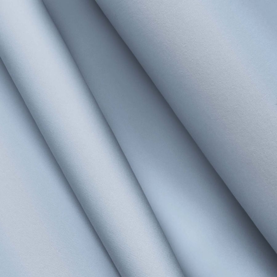 La tela Poliéster Reciclado Deportivo - Basic tiene un gramaje de 145gr/m2 y un ancho de 145cm. Su composición es de 93% poliéster y 7% elastómero, con certificación GRS de sostenibilidad y apta para su uso tanto en temporada cálida como fría. El color de la tela base es blanco mate. El color liso impreso es un azul grisáceo, cuyo CMYK es 40 19 7 0. Este color combina perfectamente con tonos neutros como el blanco, gris y negro, aunque también puede funcionar con tonos más cálidos como el rosa pálido y amarillo clarito. El color secundario tiene una apariencia sofisticada y crea sensación de profundidad, personalidad y armonía. La tela ha sido impresa con el color liso a una sola cara por impresión digital textil, lo que la convierte en una superficie más vívida, duradera y resistente a la decoloración.