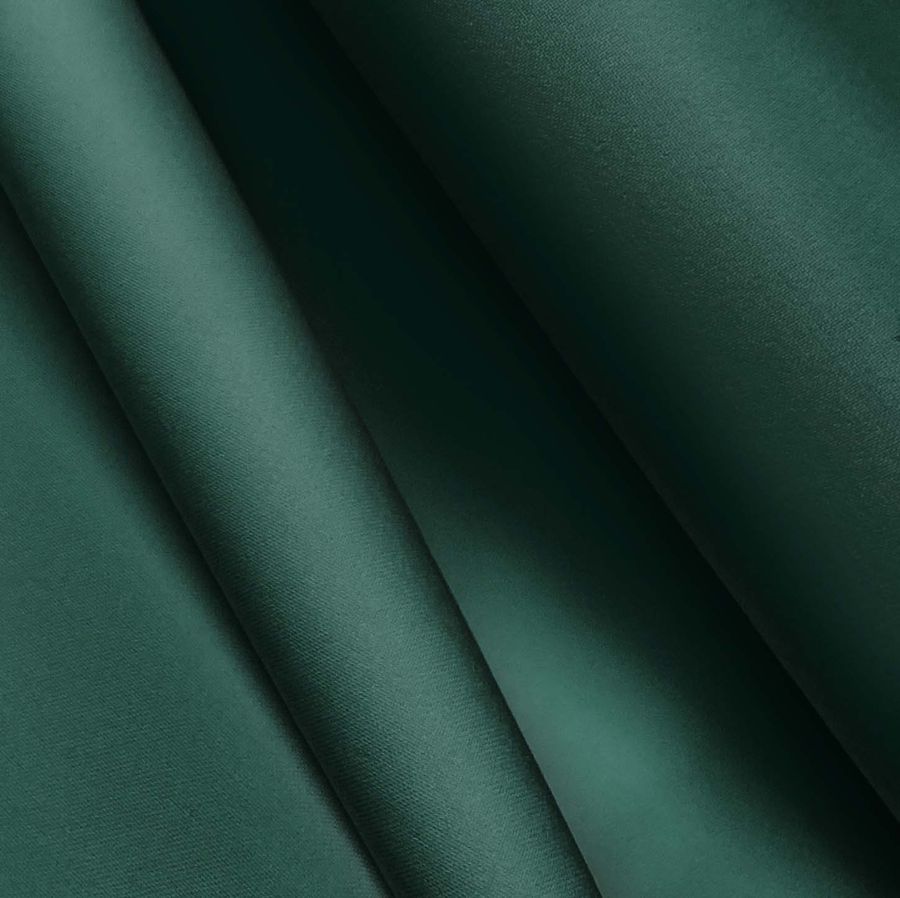 La tela base es el Poliester Reciclado Deportivo - Basic, compuesta en un 93% de poliéster y un 7% de elastómero, con un gramaje de 145 gr/m2 y un ancho de 145 cm. El color liso impreso es un verde bosque oscuro, con un CMYK de 91 50 73 66. Se combina especialmente bien con tonos tierra y beige, creando un efecto natural y armónico. Este tejido está impreso con el color liso a una sola cara por impresión digital textil, lo que le confiere un acabado vibrante y resistente, de alta calidad. Además, la tela se caracteriza por su textura suave y lisa, lo que la hace muy agradable al tacto.