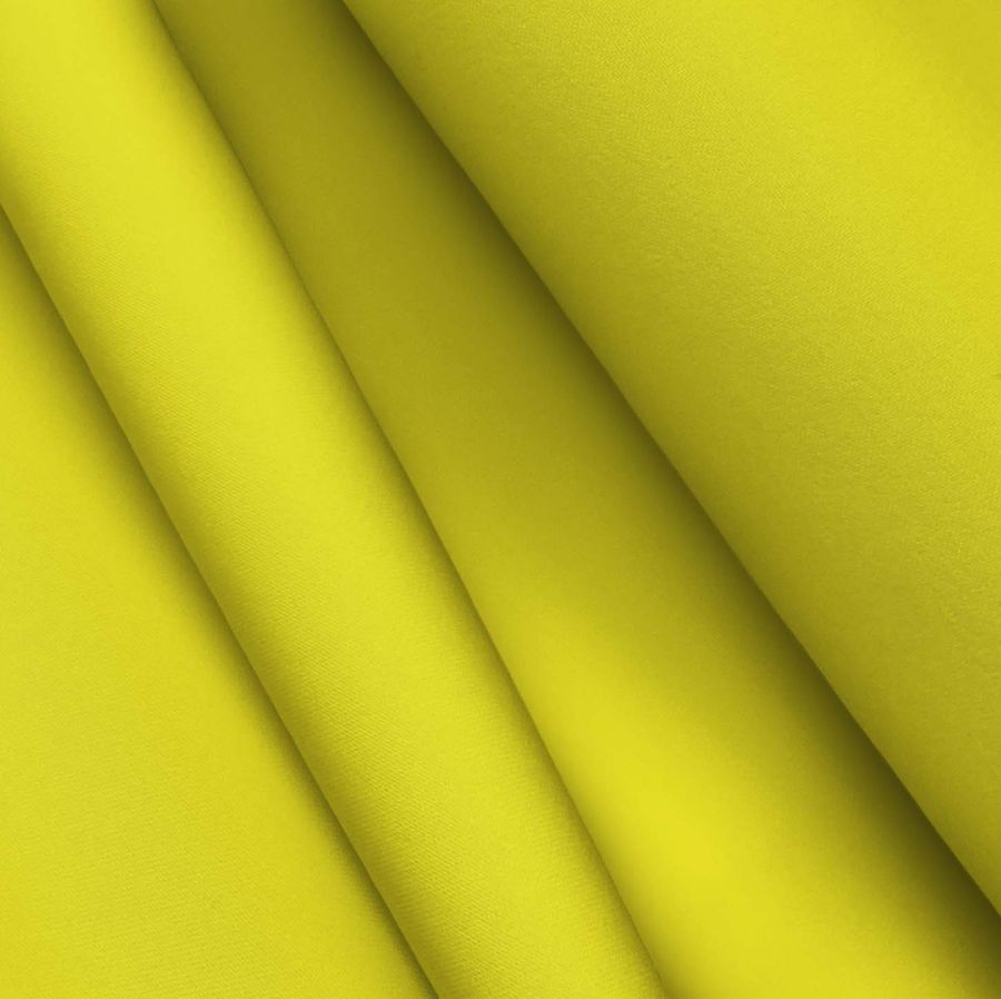 El tejido base es Poliéster Reciclado Deportivo-Basic de 145g/m2. El color liso impreso es Amarillo Canario, con una combinación de 14 en tinta Cyan, 4 en tinta Magenta, 90 en tinta Yellow y 0 en tinta Black, lo que corresponde a un CMYK de 14 4 90 0. La tela está impresa con el color liso a una sola cara por impresión digital textil.