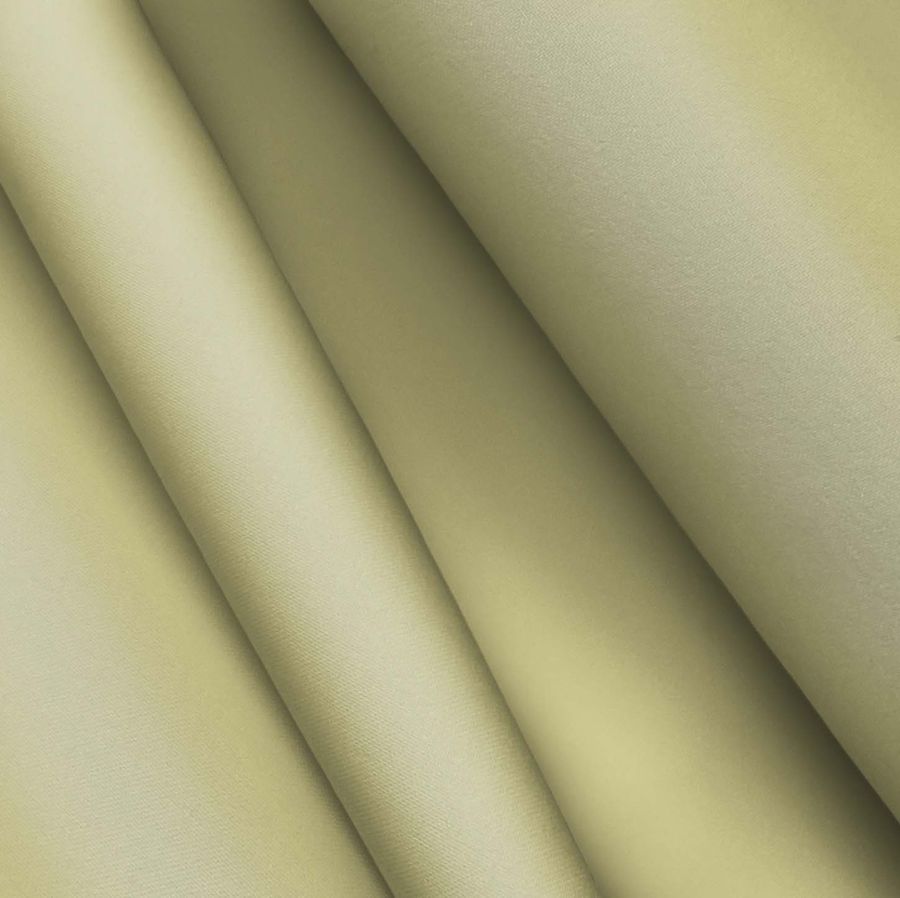 La tela base de este tejido es el Poliester Reciclado Deportivo - Basic, compuesta por un 93% de poliéster y un 7% de elastómero, con un gramaje de 145 gr/m2 y un ancho de tela de 145 cm. El color liso impreso es de tonalidades Verde y Arena, con una combinación CMYK de 29 19 57 4. Se trata de un color suave y elegante que combina perfectamente con tonalidades marrones y doradas.