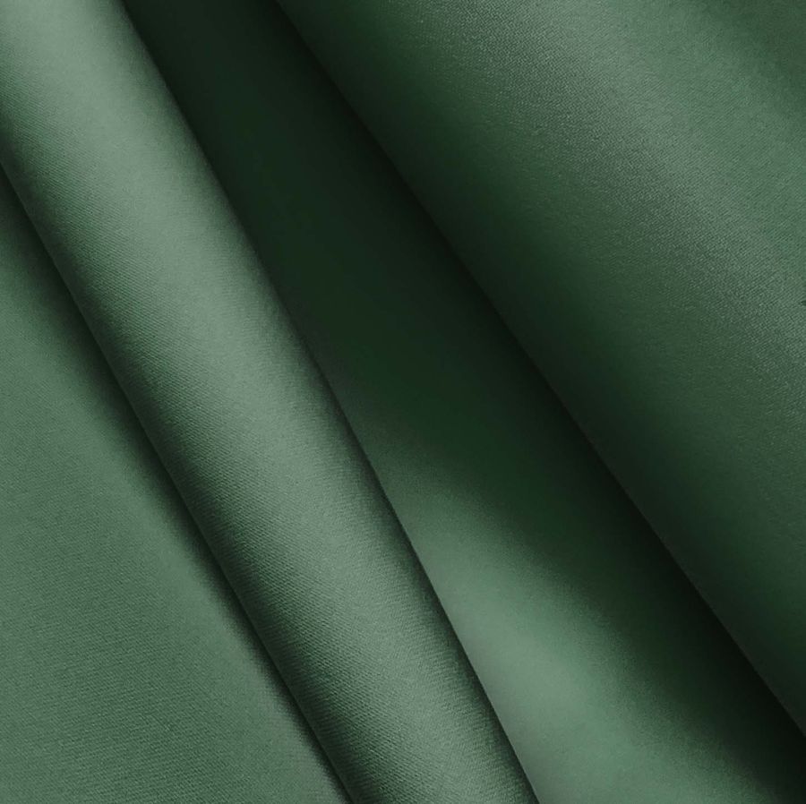 La tela base es Poliéster Reciclado Deportivo - Basic, compuesta por un 93% de poliéster y un 7% de elastómero, con un gramaje de 145 gr/m2 y un ancho de 145 cm. El color liso impreso es un verde bosque oscuro, con un CMYK de 79 45 78 49. Este color transmite una sensación de profundidad y estabilidad emocional, simbolizando la naturaleza, la armonía y la riqueza. Combina especialmente bien con tonalidades neutras como el gris y el beige, así como con tonos marrones y azules.