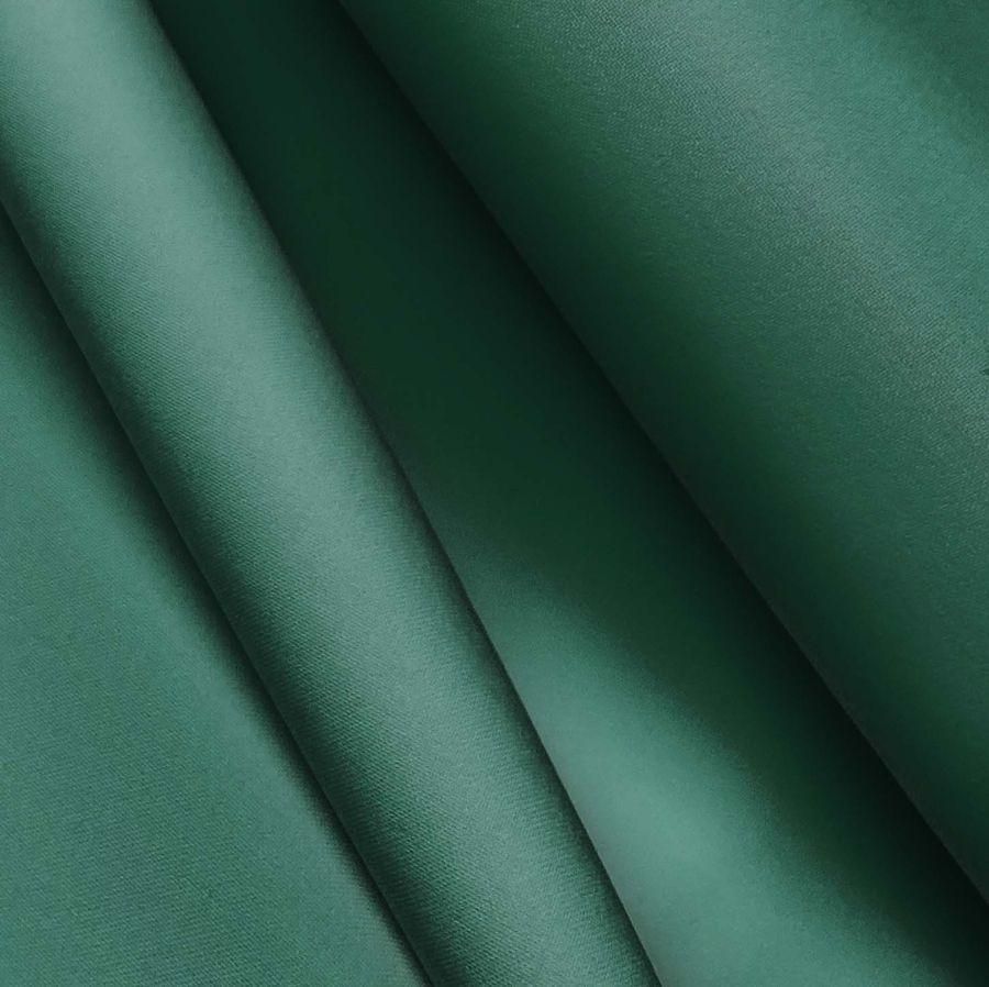 La tela base es el Poliester Reciclado Deportivo - Basic, compuesta por un 93% de poliéster y un 7% de elastómero, con un gramaje de 145 gr/m2 y una anchura de 145 cm. El color liso impreso es de un verde mar profundo con valores de CMYK de 84, 40, 70 y 42. Este color se caracteriza por ser un color intenso y elegante que evoca la profundidad y serenidad del mar. Combina especialmente bien con otros verdes y azules, así como con tonalidades tierra.