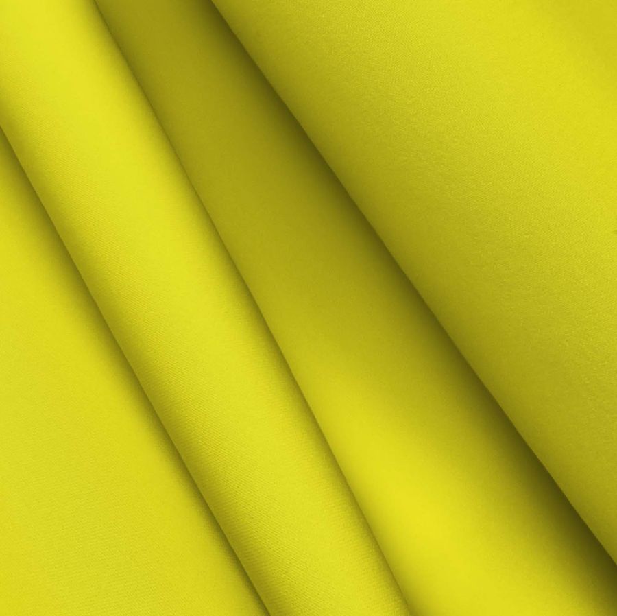 La tela base es Poliester Reciclado Deportivo - Basic, compuesta por 93% poliéster y 7% elastómero, con un gramaje de 145 gr/m2 y ancho de 145 cm. El color liso impreso es Amarillo canario con un CMYK de 12 1 90 0. Este color es un tono amarillo intenso y vibrante que se asocia con la energía y la vitalidad. Combina especialmente bien con colores neutros como blanco, gris o negro, también con tonos tierra o azules marinos para un look más deportivo.