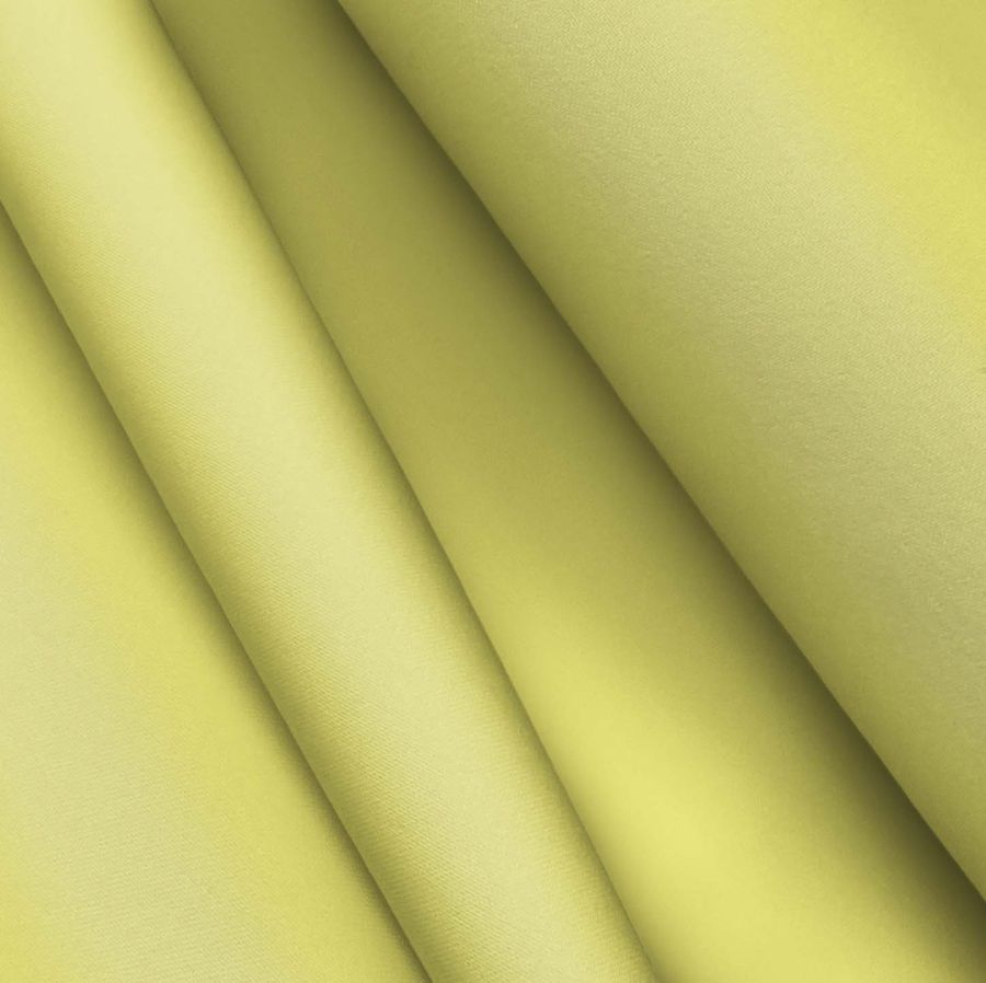 La tela base es Poliester Reciclado Deportivo - Basic, compuesta por un 93% de poliéster y un 7% de elastómero, con un gramaje de 145 gr/m2 y un ancho de 145 cm. El color liso impreso es Amarillo Plátano, con una tinta Cyan de 12, una tinta Magenta de 1, una tinta Yellow de 69 y una tinta Black de 0, lo que proporciona un CMYK de 12 1 69 0. El color secundario indicado es un tono vivo y brillante, que combina perfectamente con otros colores alegres y vibrantes como pueden ser el rosa, el naranja o el rojo.